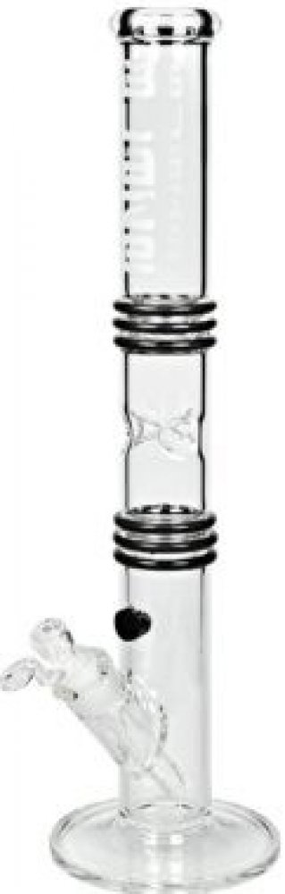 Skleněný bong Blaze Glass Rubber Line Cylinder. Transparentní rovný bong je na čelní straně zdobený gravírovaným logem Blaze Glass. Gumové kroužky navlečené na bongu zvýrazňují nejen jeho tvar, ale současně zabraňují vyklouznutí bongu z ruky. Masivnější ice bong ukončený silným hrdlem je vybavený "výstupky" pro udržení kostek ledu k ochlazení kouře. Bong ukončený silným hrdlem je kvalitně vyrobený z tepelně odolného borosilikátového skla tloušťky 4 mm. Stabilitu bongu zajištuje 10 mm silná základna. Dvoudílný chillum bongu je ukončený difuzérem, který kouř ještě více zjemní. Kotlík je uvnitř vybavený skleněným sítkem. Součástí balení bongu je plastová spojka pro pevné spojení kotlíku s chillumem. Výška: 49 cm Vnitřní průměr bongu: 4,2 cm Vnější průměr bongu: 5 cm Průměr hrdla: 6,2 cm Socket chillumu/kotlíku: 18,8 mm/14,5 mm Max. délka chillumu (měřeno od dosedací kónické části): 11,5 cm Sítko do bongu: 12 mm Materiál: borosilikátové sklo 3D prezentace produktu