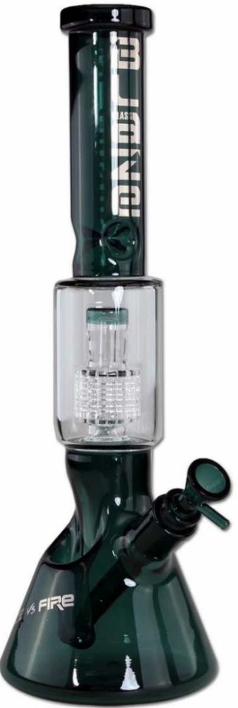 Beaker bong ICE vs. FIRE od společnosti BLAZE®. Propojuje souhru protikladů ledu a ohně. Bong z nejlepšího borosilikátového skla s užitečnou přihrádkou na standardní zapalovač. Optimální ochlazování kouře zajišťují difuzní štěrbiny v zásuvném chillumu a drum perkolátor s ochranou proti rozstřiku,navíc také ledová komora.
