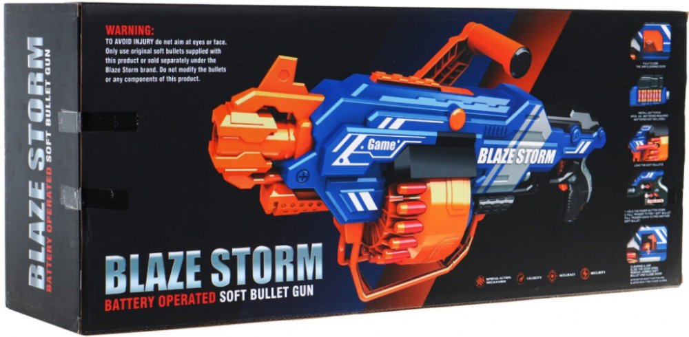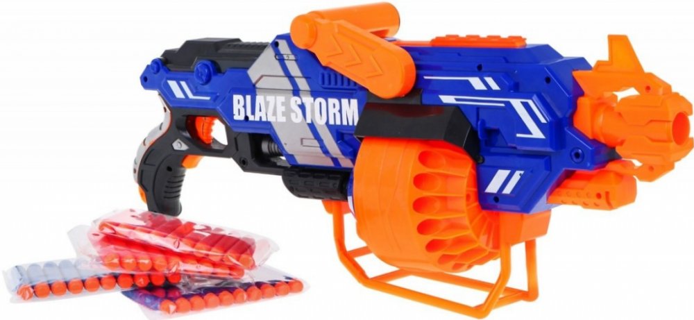 Dětská pistole se velmi snadno používá a zaručuje spoustu zábavy. Blaze Storm Large Machine Gun je skvělá zbraň pro všechny, kdo mají rádi vojenské hračky. Na rozšíření stávajícího arzenálu zde naleznete dětskou pistoli. Náboje jsou pěnové kuličky, které nikomu neublíží. Jsou měkké a nikoho nezraní. Dětská zbraň je dodána s přesným zaměřovačem a 40 ks pěnových kuliček. Pistole nesmí chybět ve výbavě žádného malého ochránce. S touto skvělou zbraní bude Vaše dítě připraveno na jakoukoli akci.Vlastnosti produktu:- spoušť- náboje: pěnové míčky (zcela bezpečné)- pohodlná rukojeť- 40ks pěnových kuliček