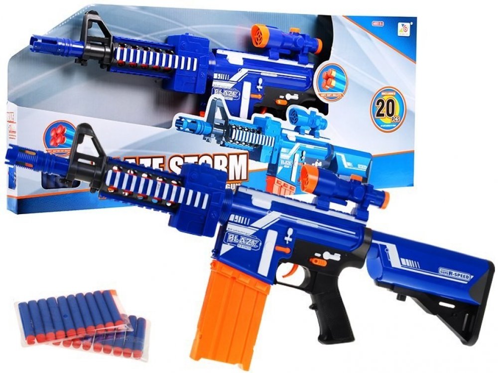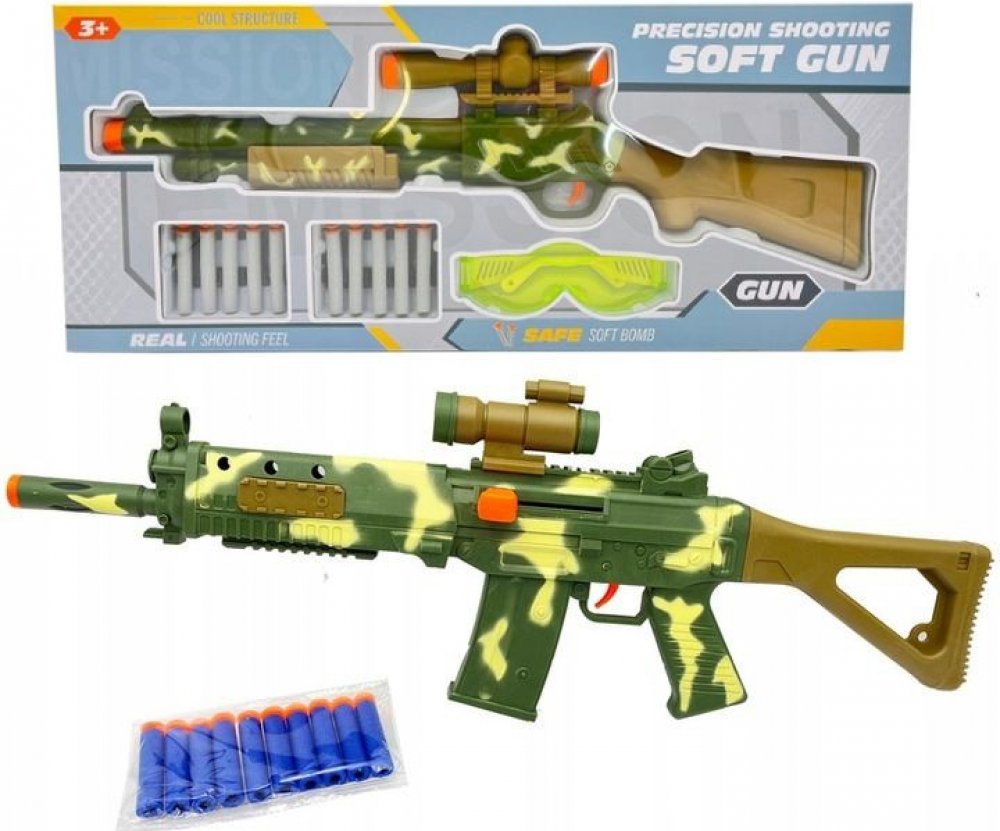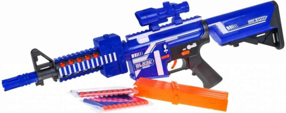 Typ karabiny - baňka, zásobník, plně elektrický automat. Typ nabíjení - zásobník nabíjený zespodu. Kapacita zásobníku - 10 kusů. Pohonný mechanismus odpalovacího zařízení - plně automatický, elektrický kompresor napájený 5 bateriemi 1,5V typu AA (nejsou součástí balení). Spoušťový mechanismus - jednotlivé výstřely (stisknutí spouště - odhození 1 střely). Zámek spouště - Spínač ON-OFF uzamkne spoušť. Rychlost střelby - 3 výstřely za sekundu. Taktický zaměřovač - imitace optického zaměřovače (lze jej rozebrat). Hlaveň - dlouhá hlaveň se dvěma pohyblivými válečky stabilizujícími výstup střely. Dosah - asi 10 metrů.