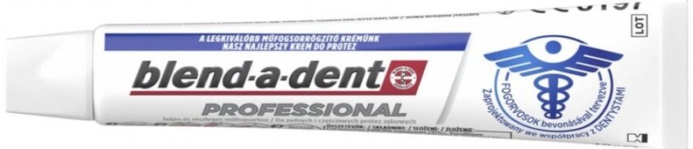 Blend-a-dent Professional je nejsilnější fixační krém z řady Blend-a-dent. Omezuje pohyb a tření zubní náhrady o dásně a v porovnání s Blend-a-dent Original vytváří pevnější spojení mezi náhradou a dásněmi. Pomáhá zamezovat množení bakterií .
