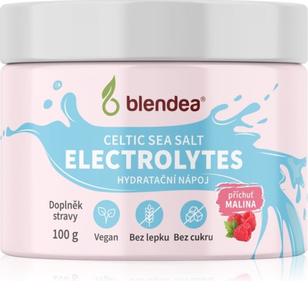 Blendea elektrolyty 100 g práškové s vysokým obsahem sodíku 25 0.8 g per 100 ml Sůl 1800mg; Na 700mg; Mg 80mg; K 300mg steviolglykosidy 1 odměrka (4 g) do 0,5 l vody
