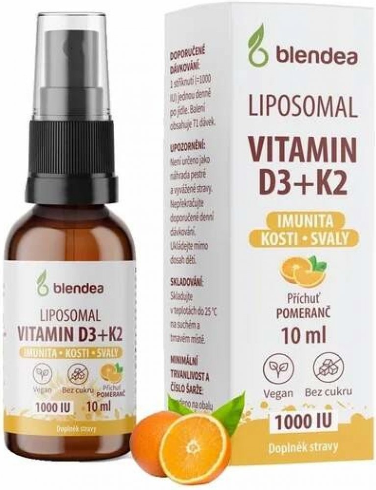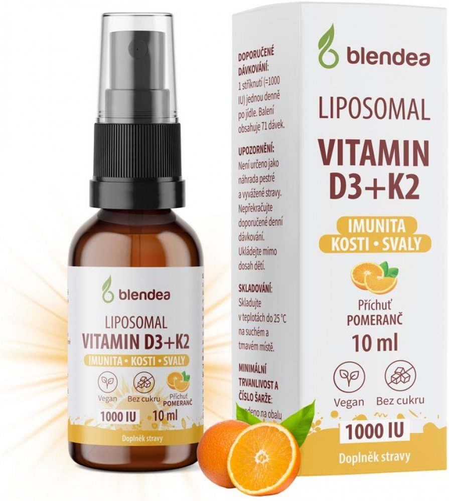 eMarkest spreje 10 ml klouby, kosti, svaly unisex 200 g Blendea pro dospělé perorální od 6 let Pomerančová kůra Česká republika vitamín K2 + D3 imunita a obecné zdraví 71 1000.0 IU Kdykoliv 1 za den Pokojová teplota (do 25°C) s vitamínem E