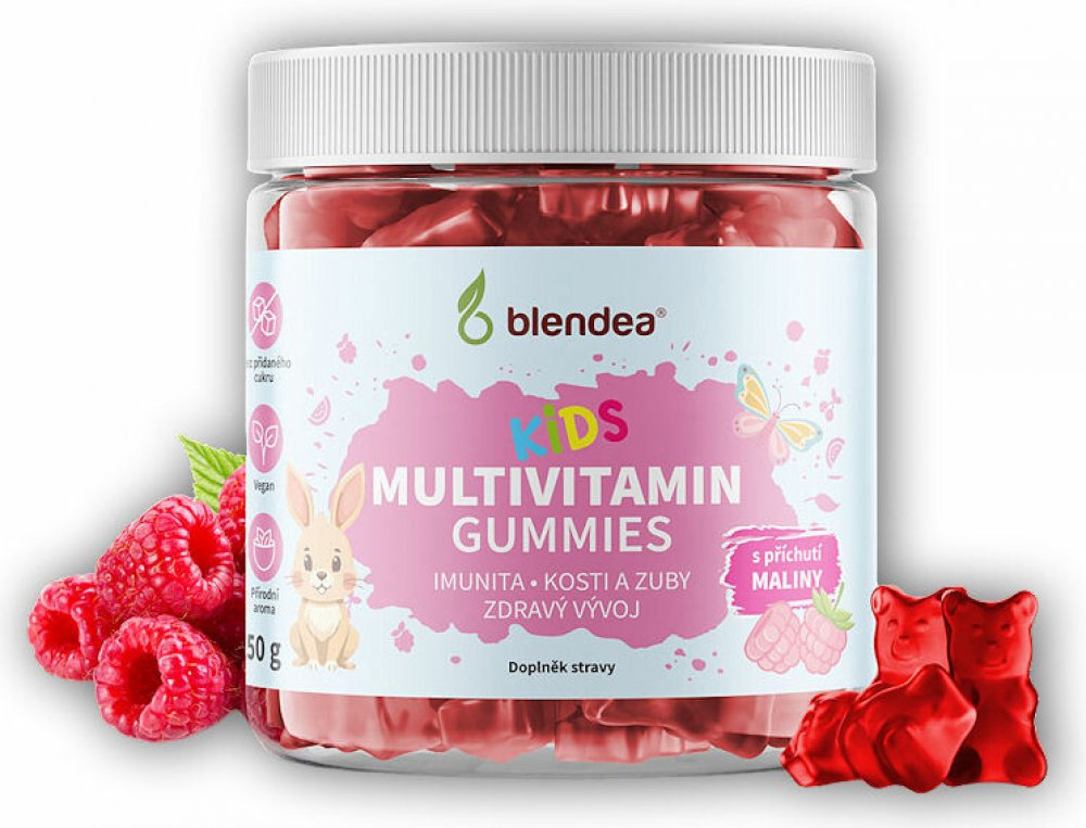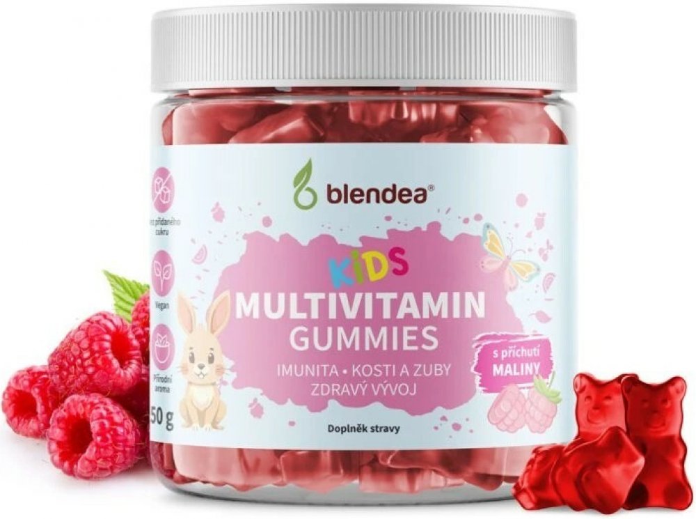 Dětský organismus se vyvíjí rychle a potřebuje každodenní dávku důležitých vitaminů a minerálů. Tyto multivitamínové gumové medvídky Blendea jsme vyvinuli speciálně s ohledem na potřeby dětí od 4 let.