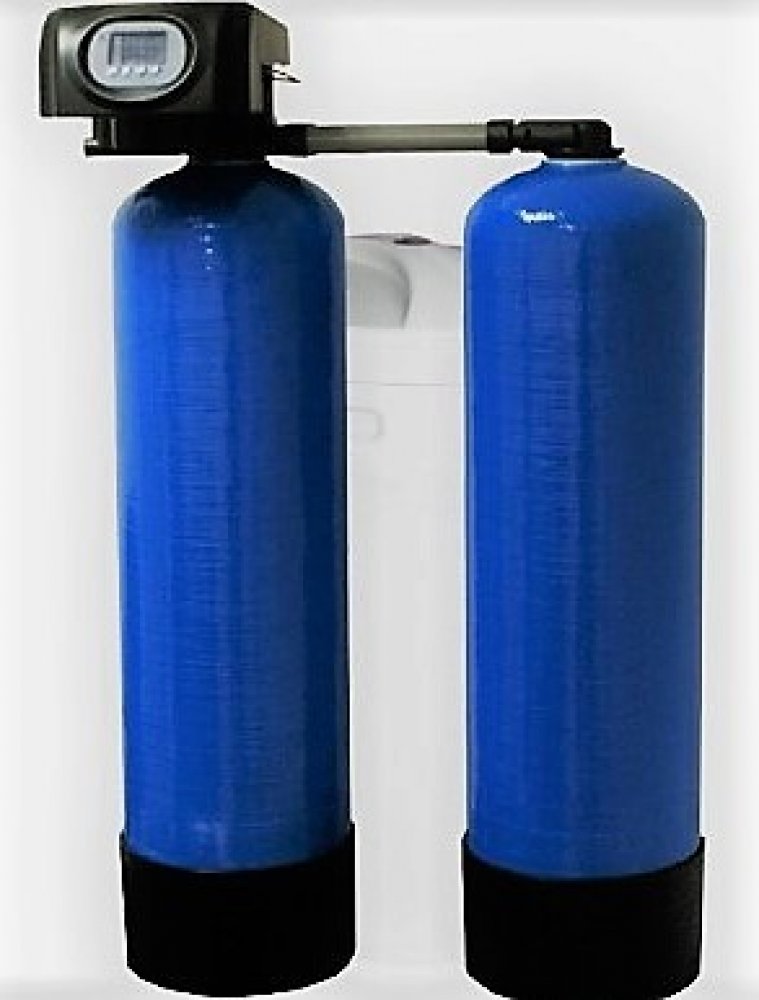 Jsou to dva propojené změkčovací filtry + nádoba na sůl (tento změkčovač je určen tam kde je neustalý odběr vody, voda teče stále měkká, buď na jeden, nebo druhý změkčovací filtr, filtry se stále střídají, přes jeden teče změkčená voda a druhý mezitím regeneruje, nebo je v záloze).