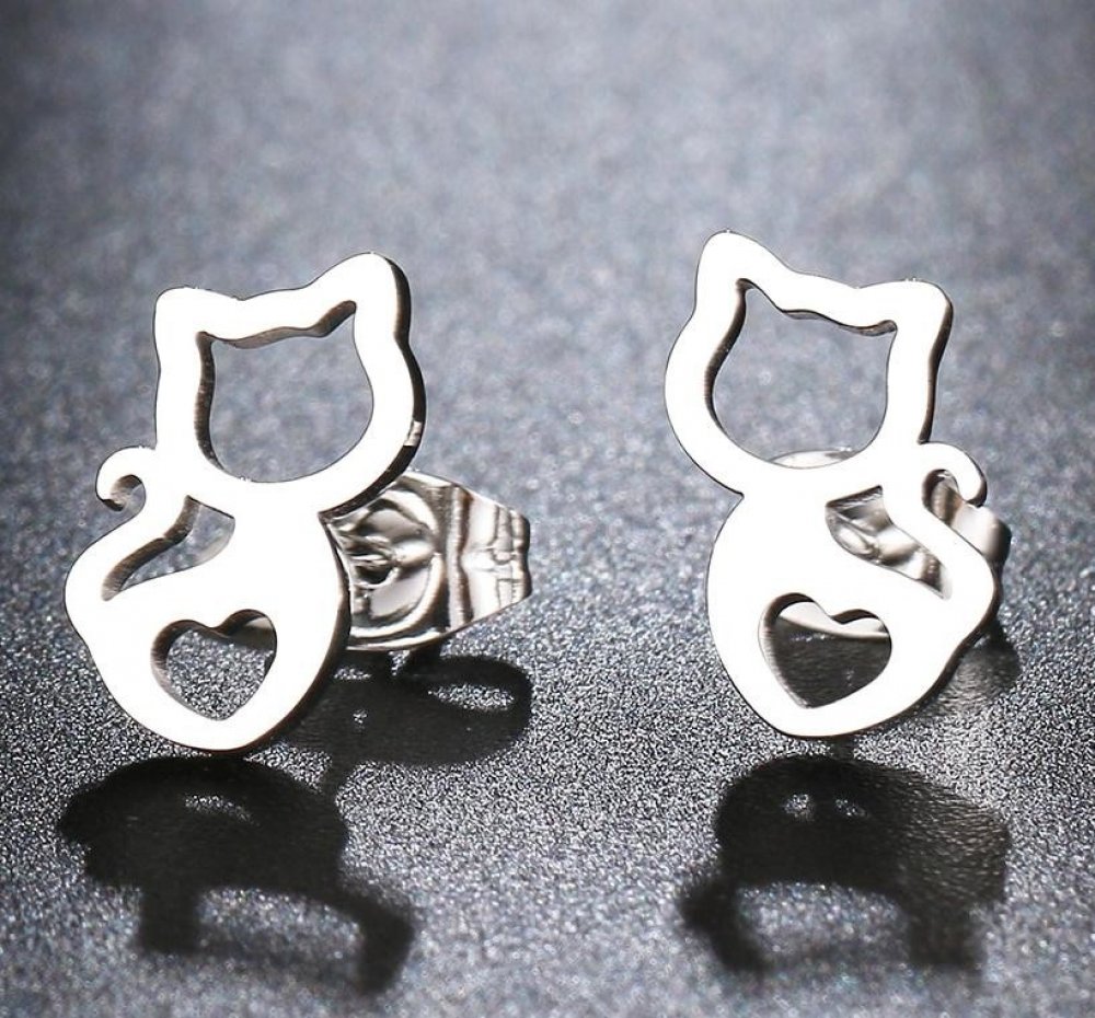 Dámské náušnice Kočka Překrásné decentní náušnice z nerez oceli se symbolem Kočky Zapínání na závit/motýlek Rozměry: 1,1 cm Materiál: nerez ocel