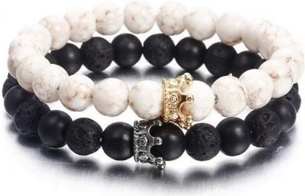 Náramky pro páry CROWN Velikost/průměr korálků: 8 mm velikost náramku:  univerzální,  obvod cca 17-21 cm - variabilní - natahovací/pružný  materiál:  korálky z kamínků, kov slitina, akryl Uvedená cena je za pár - 2 kusy