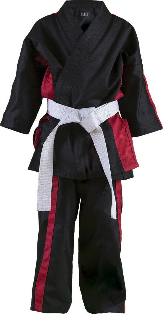 Detské Kimono Martial Arts Suit - čierno/červené Detské Kimono Martial Arts Suit v čiernočervenej farbe . Kimono na karate je hladké, makké a príjemné na dotyk. Detské Kimono Martial Arts Suit je vyrobené z 65 % polyesteru a 35 % bavlny.Nohavice na karate majú elastický pás a ľahké utiahnutie šňúry vazby a vrecka.