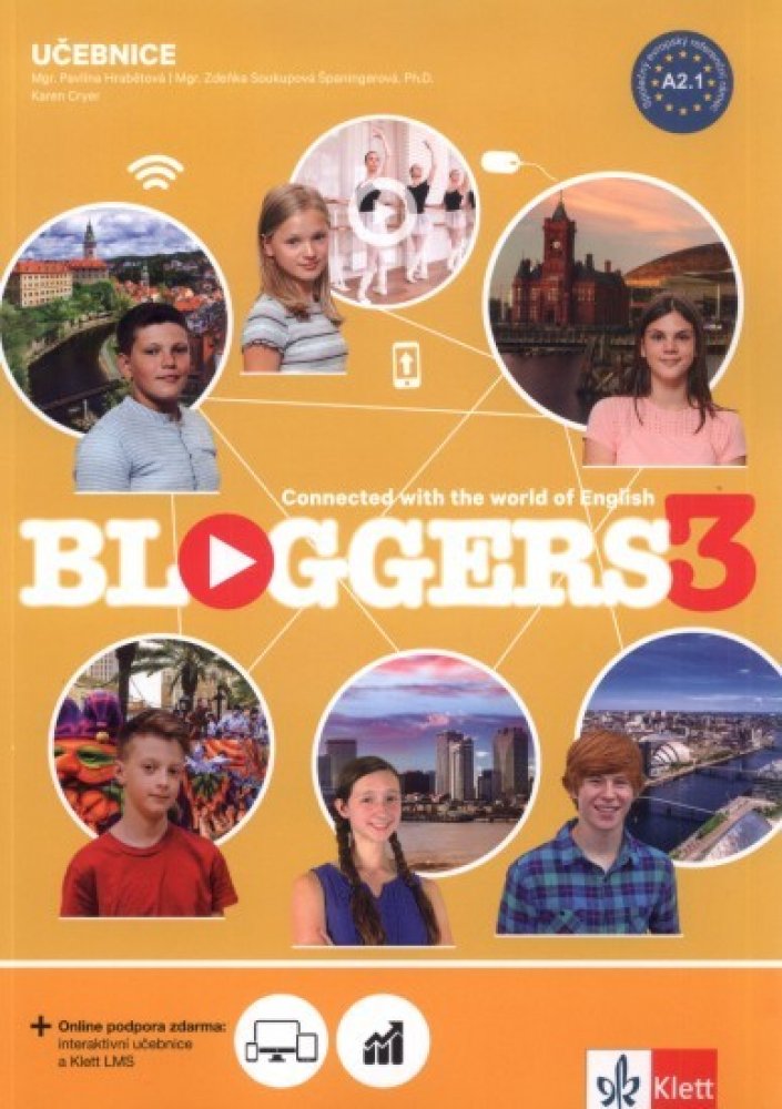 Učebnice k řadě Bloggers 3. Učebnicová sada anglického jazyka Bloggers je určena pro žáky 5. – 9. tříd ZŠ. Je vytvářena v souladu s RVP pro ZŠ. Jazyková úroveň sahá od A1 po A2+. Žáci i vyučující na této učebnicové sadě ocení zejména pozvolnou progresi, vnitřní diferenciaci, cvičení přizpůsobená potřebám žákům s SPU, atraktivní myšlenkové mapy, projekty využívající moderní techniku, zajímavá videa...