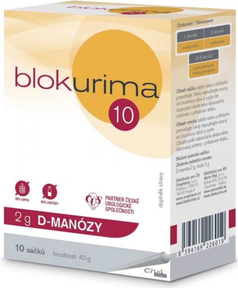 - Blokurima long sáčky je doplněk stravy s D-manózou. D-manóza je po vstřebání do organismu vyloučena v nezměněné formě ledvinami do moči. Zde se váže na příchytný aparát (FimH adhesiny) bakterií UPEC.