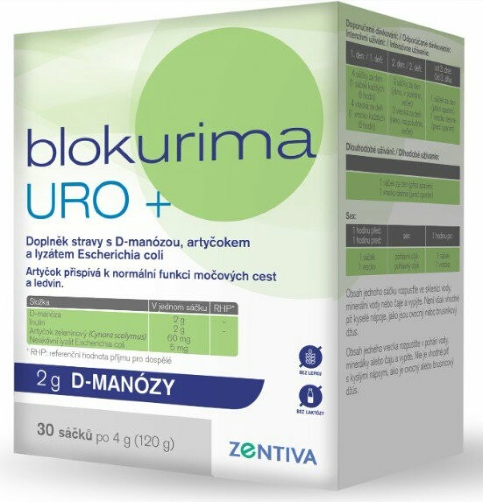 Blokurima URO + pro pravidelnou a dlouhodobou péči o Vaše močové cesty. Sáčky rozpustné ve vodě obsahují kombinaci 2 g d-manózy, inulinu, výtažku z artyčoku a lyzátu bakterie E.coli. Přípravek Blokurima URO+ je vhodný pro dlouhodobé i intenzivní užívání.
