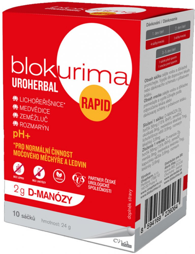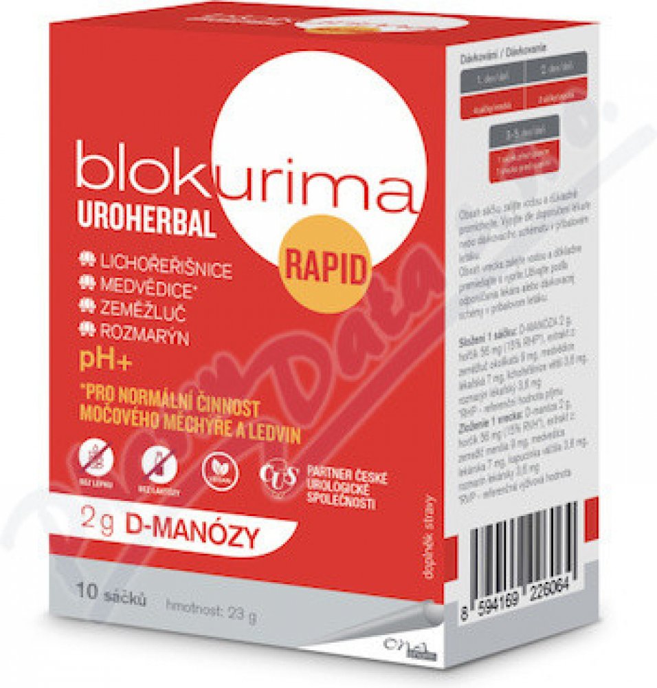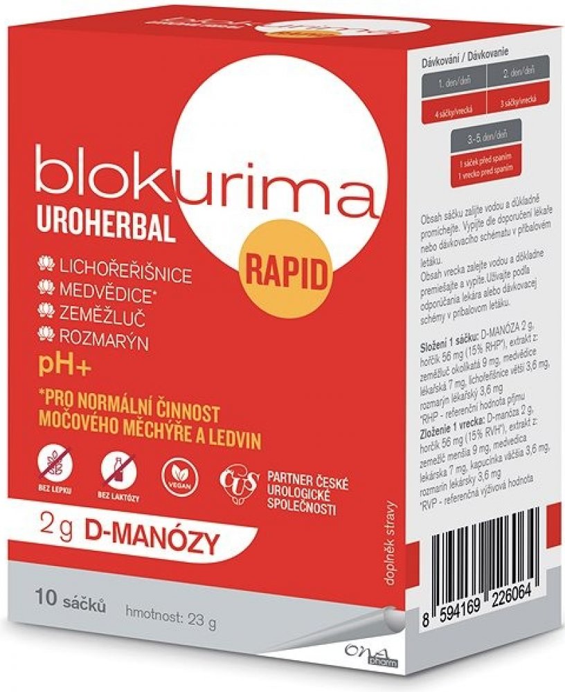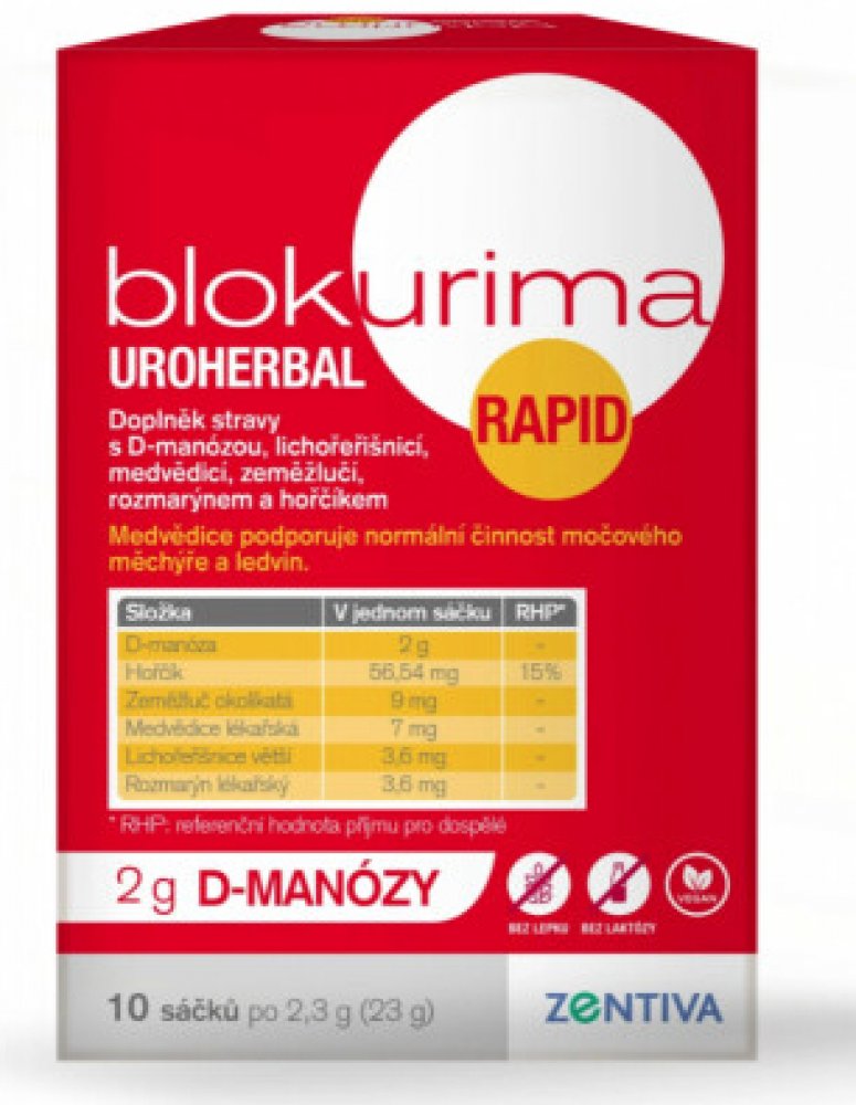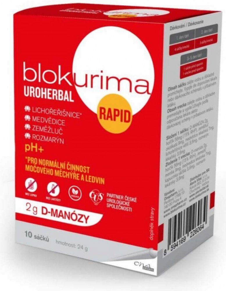 - Blokurima Uroherbal Rapid pro intenzivní péči o Vaše močové cesty1,2.