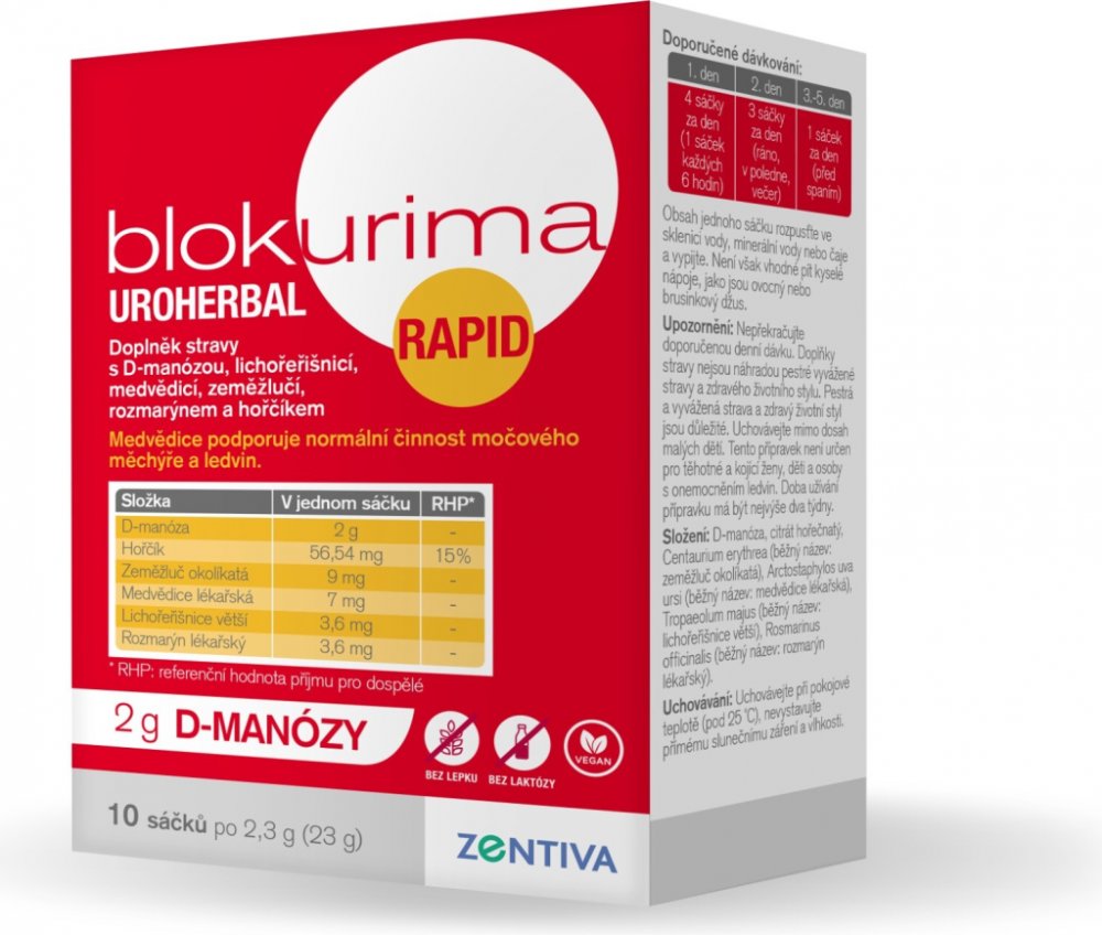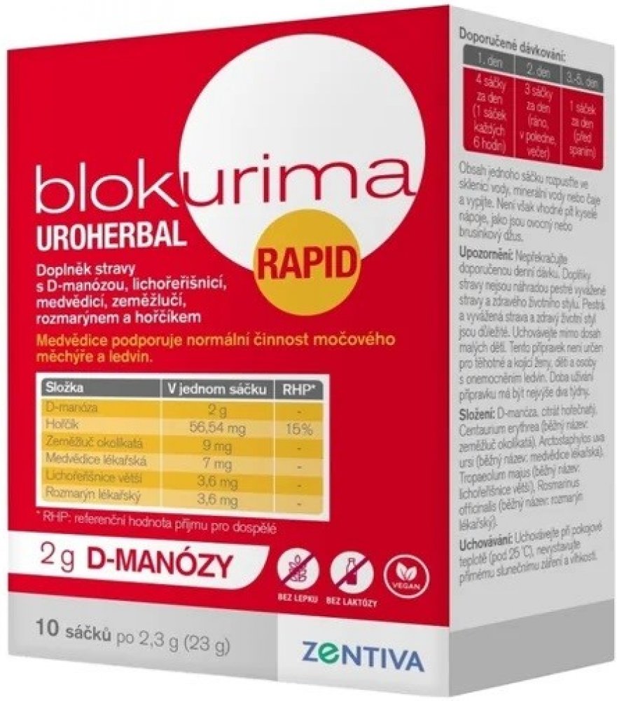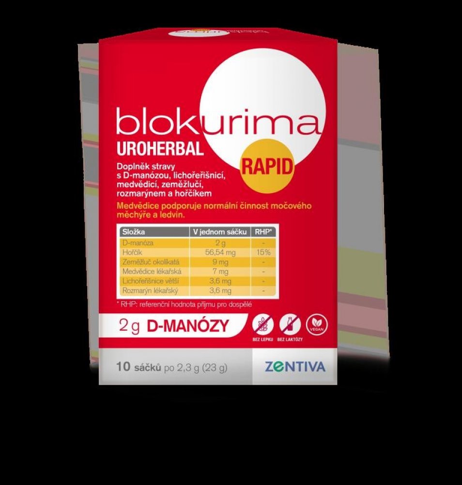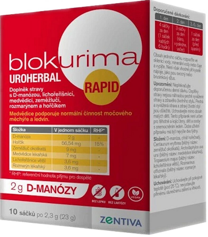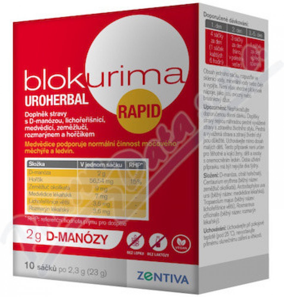 - Blokurima Uroherbal Rapid pro intenzivní péči o Vaše močové cesty1,2.