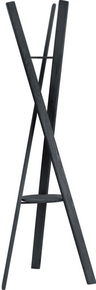 Navzdory minimalistickému designu není funkčnost tohoto stojanu na kabáty v žádném případě v pozadí. Na kulatou desku lze umístit klíče nebo tašky. Tři dřevěné prvky poskytují prostor pro bundy, šály a klobouky a na kovové spoje lze podle potřeby připevnit věšáky.