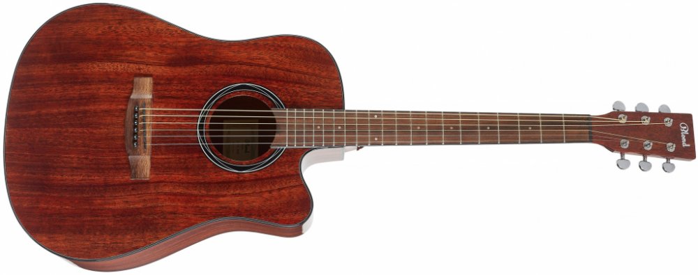 Akustická kytara Akustické kytary značky Blond jsou cenově dostupné nástroje vhodné pro začínající hudebníky. S jejich pomocí si osvojí základní techniky a dovednosti, navíc za cenu, která nijak nezatíží rodinný rozpočet. Blond D-SA MAH je akustická kytara s populárním tělem typu Dreadnought zhotoveným z vrstveného mahagonu. Kytara dále nabízí krk ze dřeva okoumé, hmatník a kobylku z fíkovníku, praktický spodní výřez těla a uchycení strun přes nultý pražec z tvrzeného kompozitního materiálu s kovovými částicemi (plastic steel) v chromovaných die-cast mechanikách. Stylové zpracování podtrhuje nanesený lesklý lak a tradiční prvky v podobě černé obvodové lemovky topu (ABS) a rozety.