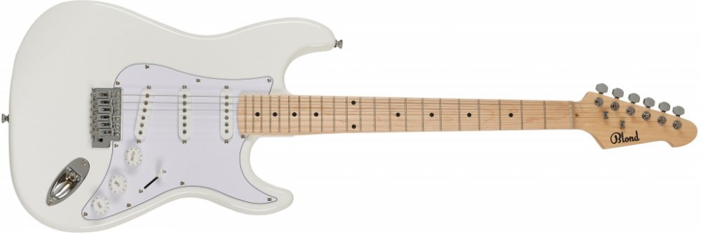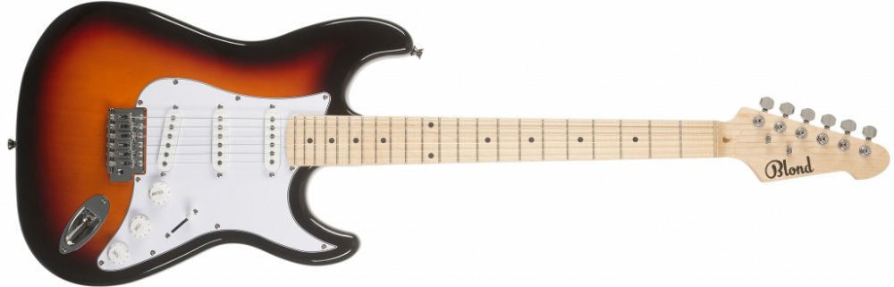Elektrická kytara Elektrická kytara Blond STR-1 SB představuje ideální volbu pro začínající rockery a rockerky. Jedná se o nástroj s tradičním ST tvarem a všemi náležitostmi, které si s tímto typem kytary spojíte - od single-coil ST style snímačů přes synchronizované tremolo po pickguard. Tělo kytary je zhotoveno z topolu. K javorovému krku s příjemným Modern C profilem je přilepen hmatník z materiálu Roseacer, což je tepelně upravený javor v dekoru palisandru. Klasický řízný zvuk ST modelů poskytují kytaře tři single-coil snímače. Jeho charakter upravíte pomocí ovladačů tónové clony, hlasitosti a přepínače snímačů. Struny jsou uchyceny v die-cast ladících mechanikách a synchronizovaném tremolu. Stylové zpracování podtrhuje bílý pickguard a chromovaný hardware.