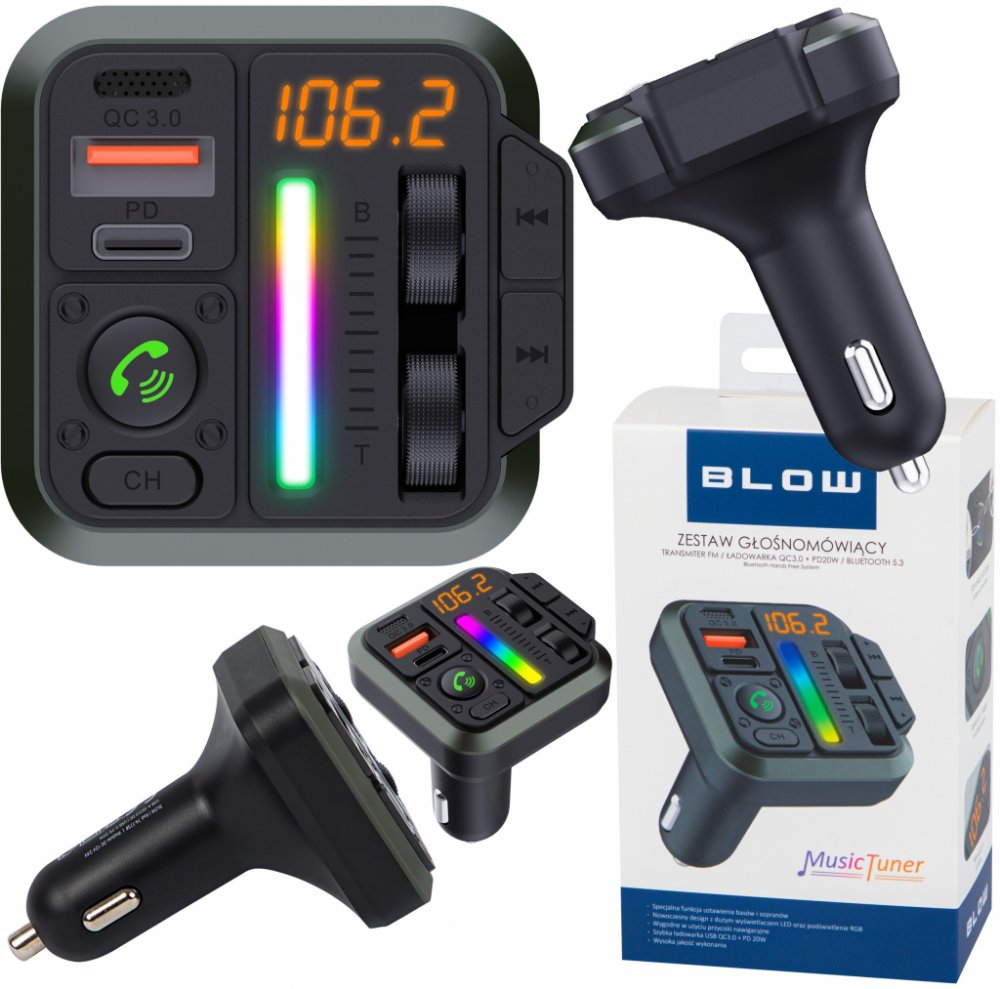 ⭐AUTOMOBILOVÝ VYSÍLAČ BLUETOOTH 5.3 FM RGB NABÍJEČKA PD 20W QC 3.0 USB-C⭐Zařízení přenáší hudbu a telefonní hovory přímo pomocí připojení Bluetooth do automobilového stereo FM systému. Produkt má vysoce kvalitní mikrofon (používá se ve funkci handsfree) a díky unikátní funkci nastavení basů a sopránů poskytuje zařízení mnohem větší možnosti korekce zvuku.❗❕NEJDŮLEŽITĚJŠÍ FUNKCE❕❗