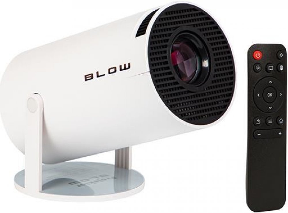 Projektor BLOW je moderní zařízení, které vám umožní sledovat filmy, programy, hry a další multimediální obsah na velké obrazovce. Projektor má vestavěný systém Android 11, který umožňuje přístup k mnoha aplikacím a online službám. K projektoru se můžete připojit pomocí Wi-Fi, Bluetooth, HDMI, USB nebo AV. Projektor má nativní rozlišení 720p a podporuje dekódování 4K, což zajišťuje vysokou kvalitu obrazu. Jas 250 ANSI lumenů a kontrast 1500:1 činí obraz jasným a živým i v mírně osvětlené místnosti. Funkce automatické korekce Projektor má také funkci automatické korekce lichoběžníkového zkre