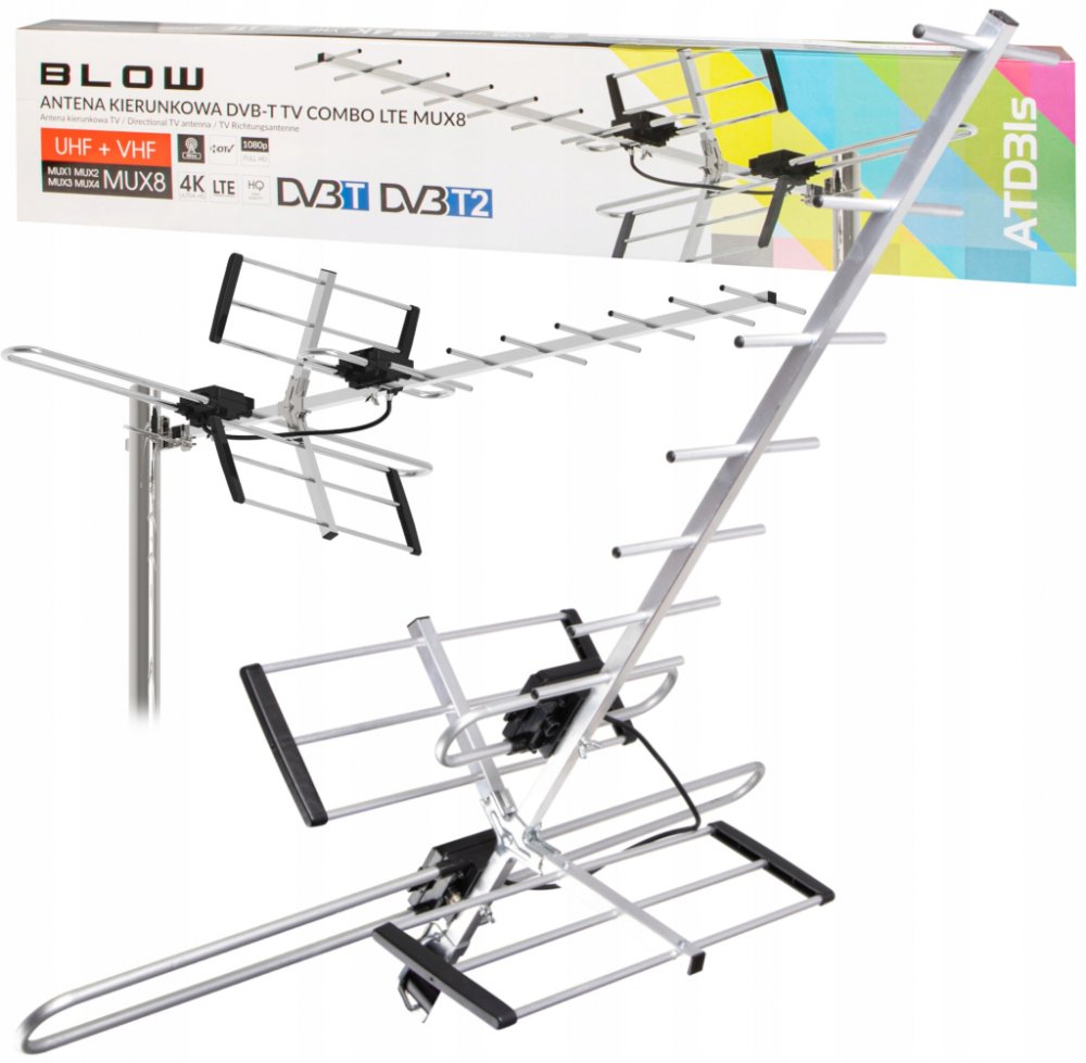 PŘÍJEM VŠECH DOSTUPNÝCH KANÁLŮ V v Polsku MUX1 MUX2 MUX3 MUX8PŘIZPŮSOBENA PRO NOVOU TECHNOLOGII VSTUPUJÍCÍ V ROCE 2022 - KODEK H.265 HEVCSMĚROVÁ PASIVNÍ ANTÉNA DVB-T BLOW ATD31S