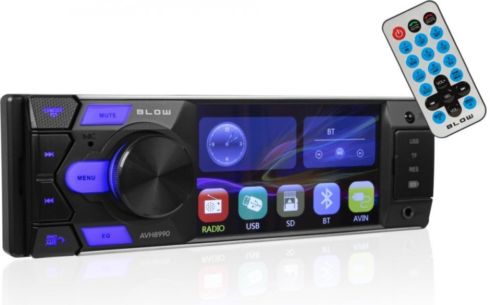 Rádio BLOW AVH-8990 - 4" RDS MP5/USB/micro SD/BLUETOOTH Rádio BLOW AVH-8990 je ideálním společníkem na cesty - ať už se jedná o krátké trasy nebo dlouhé výlety Díkyautomatickému vyhledávání stanic si můžete vychutnat kvalitní vysílání bez zbytečného klikání Díky modernímu rozhraní,2x USB portu, AUX, čtečkou karet micro SD a funkcí Bluetooth máte neomezené možnosti přehrávání oblíbených skladeb, podcastů nebo audioknih Navíc si díkyekvalizéru můžete zvuk upravit podle svých představ A to vše na přehledném4" LCD displejiv univerzální velikosti 1 DIN.Nejdůležitější funkce:Automatické vyhledávání stanic 2x port USB, AUX, čtečka karet micro SD Funkce Bluetooth Funkce nabíjení Dálkové ovládání Moderní rádiové rozhraní Snadno čitelný displej LCD Nastavení zvuku - ekvalizér Univerzální velikost - 1 DIN Displej Rádio vybavené funkcemi, které zpříjemňují a zpříjemňují řízení Displej umožňuje snadno přečíst aktuální rozhlasovou stanici, skladbu a zkontrolovat aktuální čas Připojením flash disku k portu USB můžeme přehrávat filmy, fotografie a hudbuVýchozí stanice Automatické ladění vyhledá dostupné rozhlasové stanice Oblíbené stanice si můžete uložit a přiřadit je konkrétním tlačítkům na předním panelu Stačí jedno tlačítko, abyste vybrali stanici bez nutnosti vyhledávání a mohli si vychutnat poslech oblíbené rozhlasové staniceStandard ISO Rádio je vybaveno standardem ISO - adaptér se vyznačuje jednoduchostí a vysokou spolehlivostí Umožňuje bezproblémové připojení rozhlasového přijímače v případě chyb v připojení Schéma zapojení je v návodu k obsluze výrobkuBluetooth Rádio je vybaveno funkcí Bluetooth, díky které můžeme poslouchat hudbu z telefonu, poslouchat podcasty, audioknihy, telefonovatSpecifikaceFrekvenční rozsah: FM 87,5108 MHz Sensitivity: =40 dB - 4" displej Šířka pásma zkreslení (1 kHz): =22db Frekvenční odezva: (100 Hz10 kHz) +/- 6 dB Impedance: 4 ohmy Napájení: 12 V DC Maximální výkon: 4x60W Podpora formátů: RMVB/RM/FLV/3GP/MPEG/DIVX/AVI/XVID/DAT Podpora formátů: MP3/WMA/WAV/OGG/APE/AAC/FLAC Podporované formáty: JPG/BMP/PNG Displej: 4" Rozměry: 19x12,5x5,9 cm Obsah baleníRádio BLOW AVH-8990 Pouzdro na vysílačku Dálkové ovládání Klíče usnadňující montáž a demontáž rádia Elektrická kabeláž Uživatelská příručka