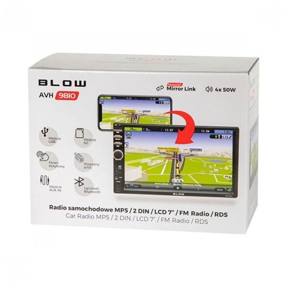 Autorádio AVH-9810 značky Blow s multimediálním systémem a 7palcovým barevným dotykovým displejem umožňuje přehrávat FM/AM rádio, hudbu, filmy a také obrázky.