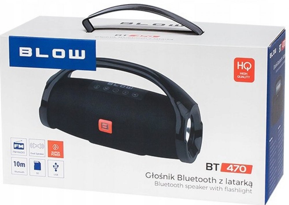 Přenosný reproduktor BLOW BT470 nabízí nespočet kvalitních a moderních funkcí. Disponuje přehráváním hudby přes Bluetooth. Do reproduktoru je možné vložit micro SD kartu (max kapacita 32GB) nebo využijte možnosti kvalitního FM rádia. Ideální pro cestování, snadno přenositelný.