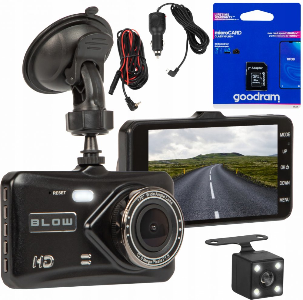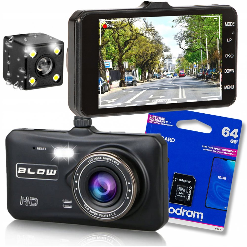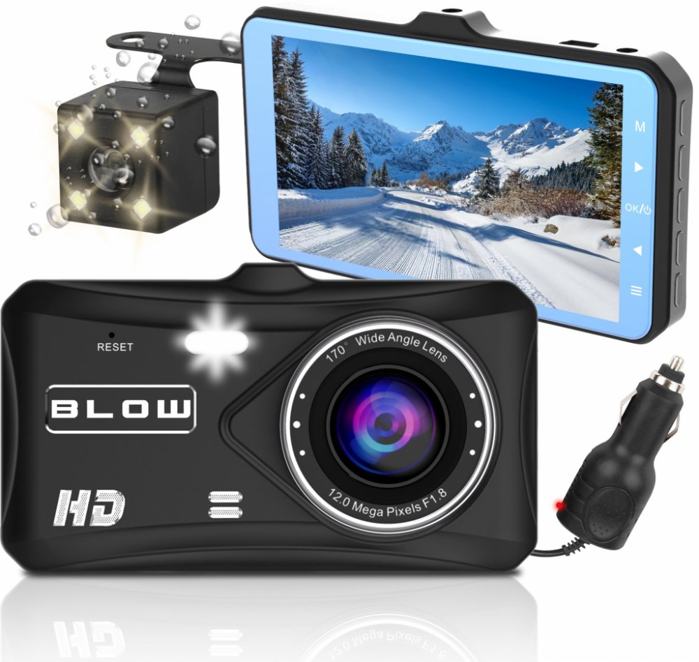 Videorekordér BLACKBOX DVR F800BLOWVideorekordér Blackbox F800 s couvací kamerou Blow je ideálním zařízením pro ty, kteří ocení vysokou kvalitu obrazu, cenovou dostupnost a spolehlivost. Videorekordér má vestavěný slot pro karty microSD až do velikosti 64 GB a funkci nahrávání ve smyčce. Vysoká kvalita za nízkou cenu Videorekordér Blow s couvací kamerou se jistě osvědčí jako zařízení pro bezpečnost silničního provozu. Díky vysokému rozlišení Full HD a velmi širokému pozorovacímu úhlu 140 stupňů budou zaznamenaná videa jasná a čitelná. Zařízení má vestavěný mikrofon, který umožňuje nahrávání zvuku v nejvyšší kvalitě. Vestavěný G-senzor chrání pořízené záznamy, a to při náhlém brzdění, nehodách nebo kolizích. Instalace hlavní jednotky je velmi jednoduchá a měla by se vejít do každého zrcátka automobilu. Součástí balení je i přídavná kamera Součástísady je také záznamník určený k záznamu událostí, které se mohou odehrát v zadní části vozu. Jedná se o další bezpečnostní prvek, který poskytuje jistotu a klid v případě různých dopravních nehod. Zadní videorekordér lze také použít jako couvací kameru, která ještě více zvýší bezpečnost a usnadní výjezd z parkovišť nebo jiných míst se zhoršenou viditelností. Detekce pohybu Zařízení BlackBox DVR F800 je vybaveno funkcí detekce pohybu, která v pohotovostním režimu zachytí a zaznamená procházející osobu nebo pohybující se objekt a optimalizuje tak výkon zařízení Spolehlivost v obtížných situacích Záznam nehody nebo autonehody může být zásadním důkazem při zjišťování příčiny a viníka nehody. Zajistí tak klid i v těch nejstresovějších situacích. Kamera Blow Blackbox je vybavena slotem pro paměťovou kartu micro SD s kapacitou až 64 GB a možností nahrávání ve smyčce - při vhodném nastavení začne záznamník v případě nedostatku volného místa v paměti přepisovat poslední uložený soubor.