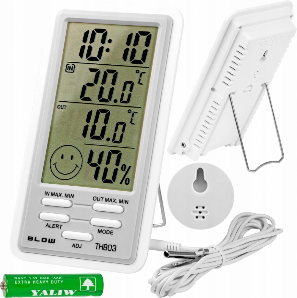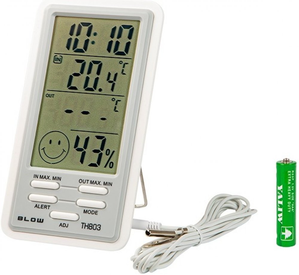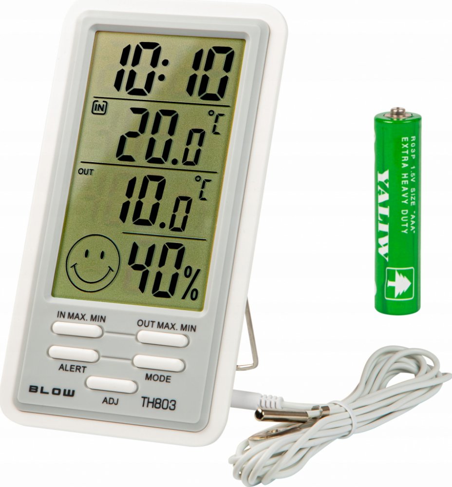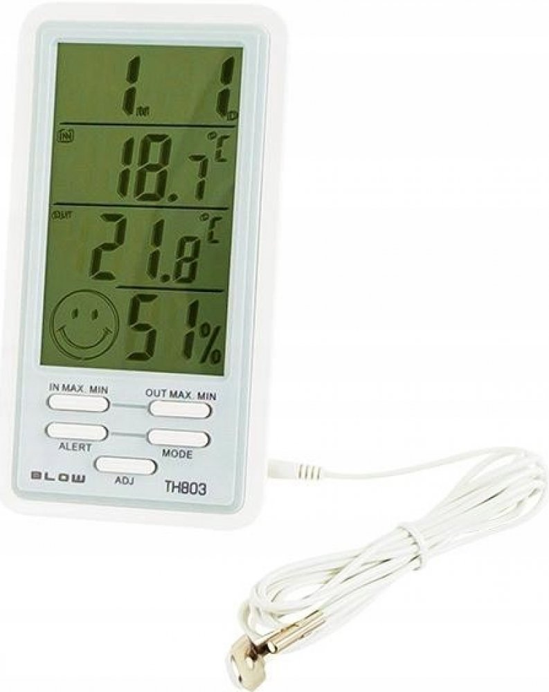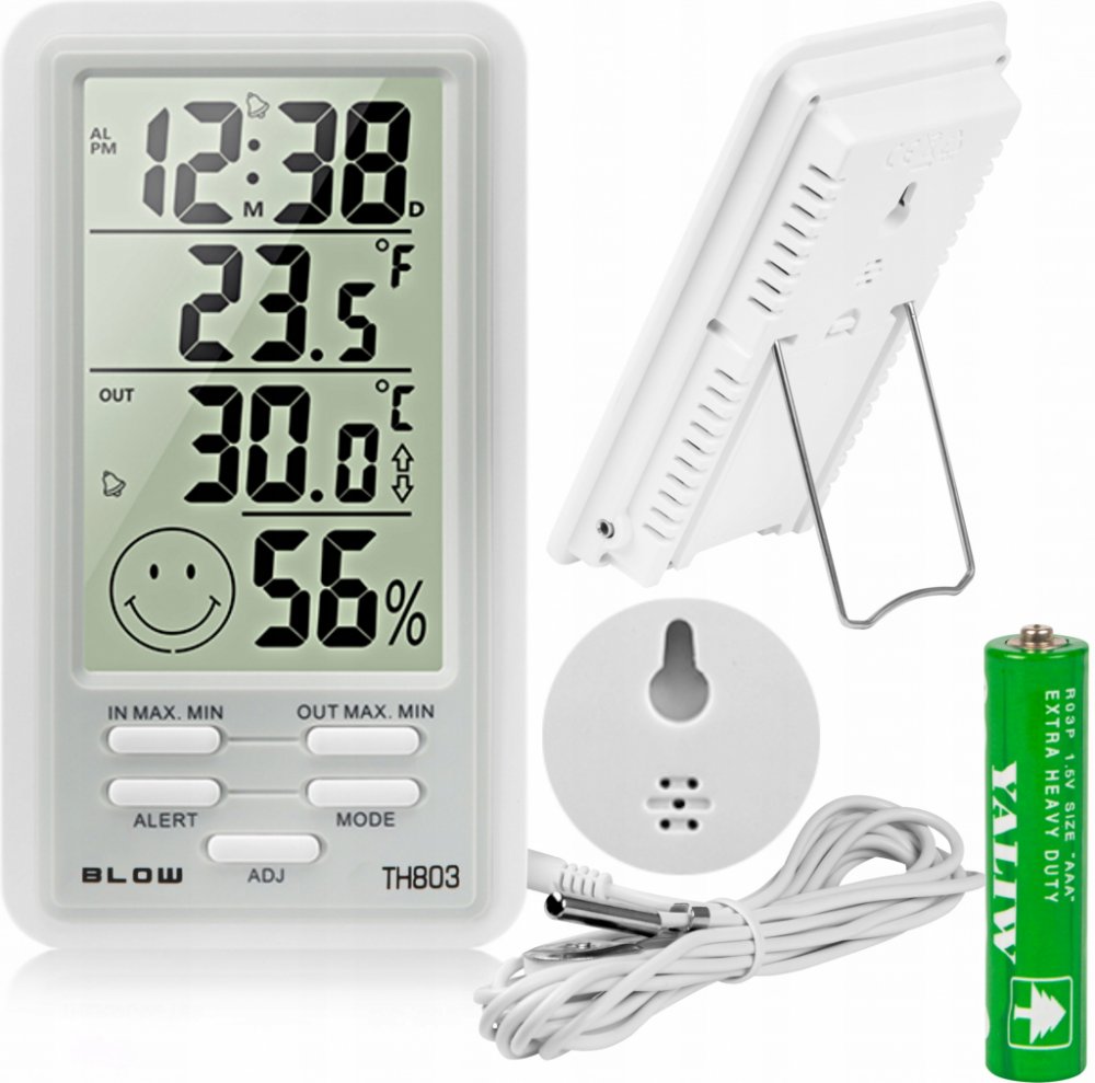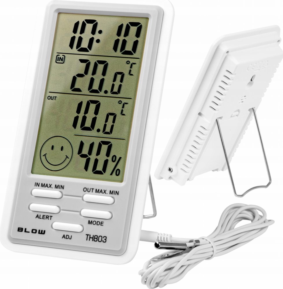 Kvalitní termo-vlhkoměr Blow zobrazuje současně aktuální venkovní a vnitřní teplotu (kde si uživatel může vybrat mezi stupnicí Celsia nebo Fahrenheita), vlhkost vzduchu a aktuální datum a čas (střídavě). Kromě toho zařízení zobrazuje nejnižší a nejvyšší hodnoty zaznamenané během dne.