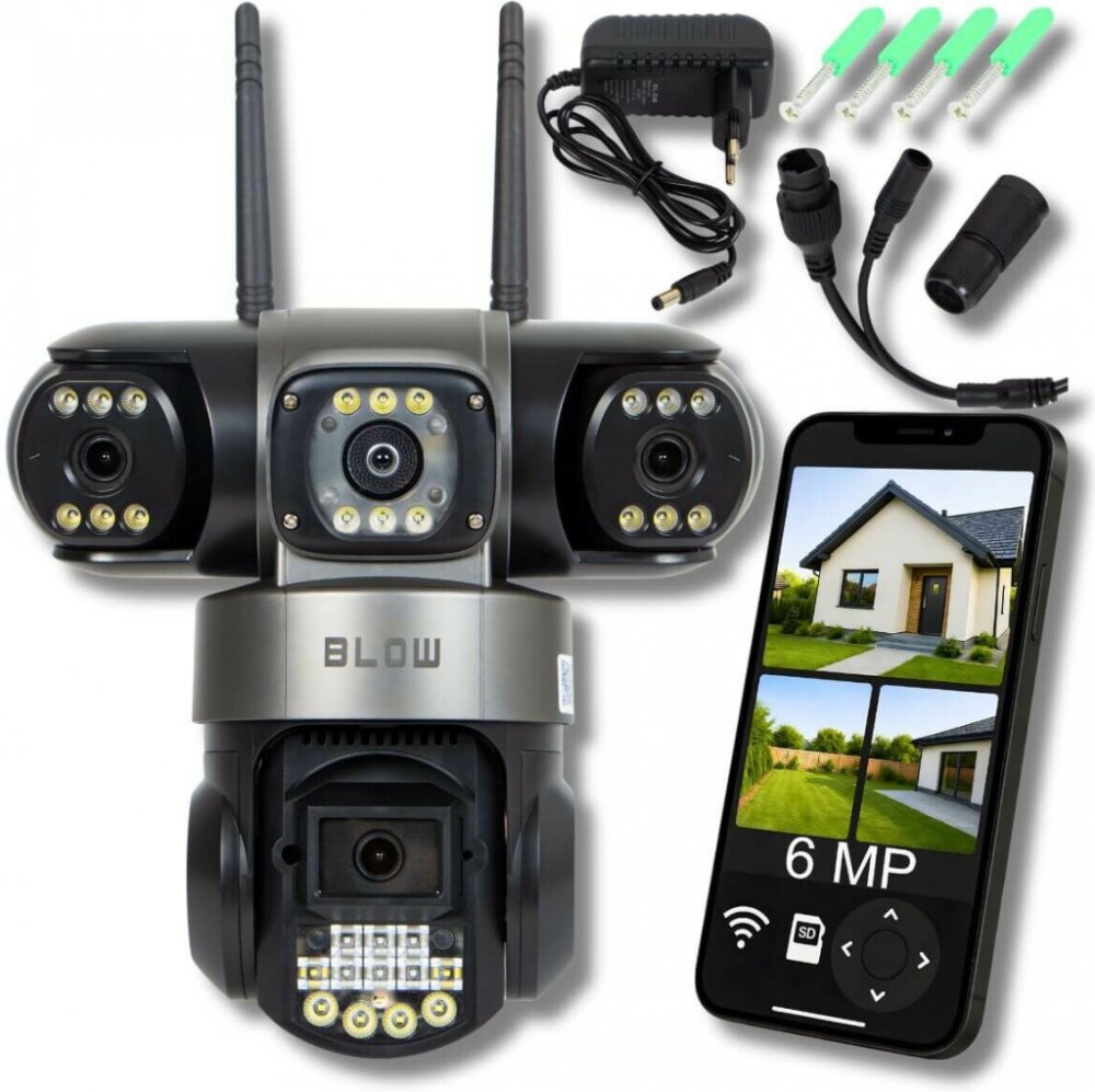 Moderní venkovní WiFi IP kamera Blow V-326B 6MP je navržena pro ty, kteří chtějí mít nepřetržitý přehled o svém domě, pozemku nebo firmě bez složitých systémů. Díky trojici objektivů , otočné PTZ konstrukci a vysokému rozlišení poskytuje širší pokrytí než běžné kamery. Ovládání probíhá pohodlně přes mobilní aplikaci, takže situaci sledujete odkudkoli na světě. Kamera je připravena pro denní i noční provoz, zvládne déšť, mráz i horka. Jedná se o praktické řešení pro každého, kdo chce zvýšit bezpečnost bez kompromisů.