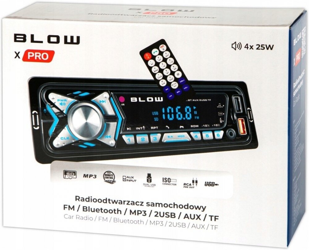 Moderní a funkční autorádio BLOW X-PRO 1 je vybaveno dvěma USB vstupy a microSD slotem, který umožňuje přehrávání hudby z přenosných zařízení a externí paměti i jejich nabíjení. Rádio má navíc modul Bluetooth, který umožňuje streamovat hudbu z telefonu a telefonovat díky funkci handsfree.