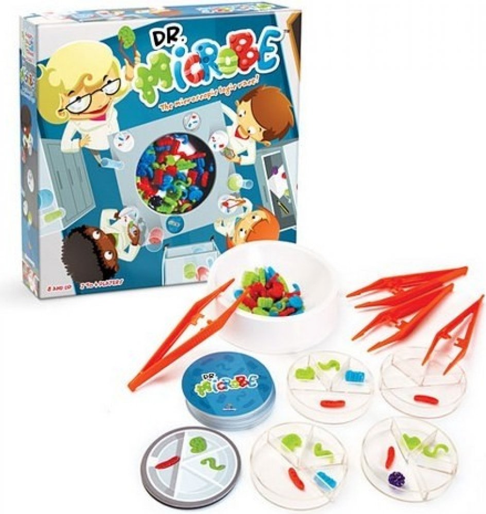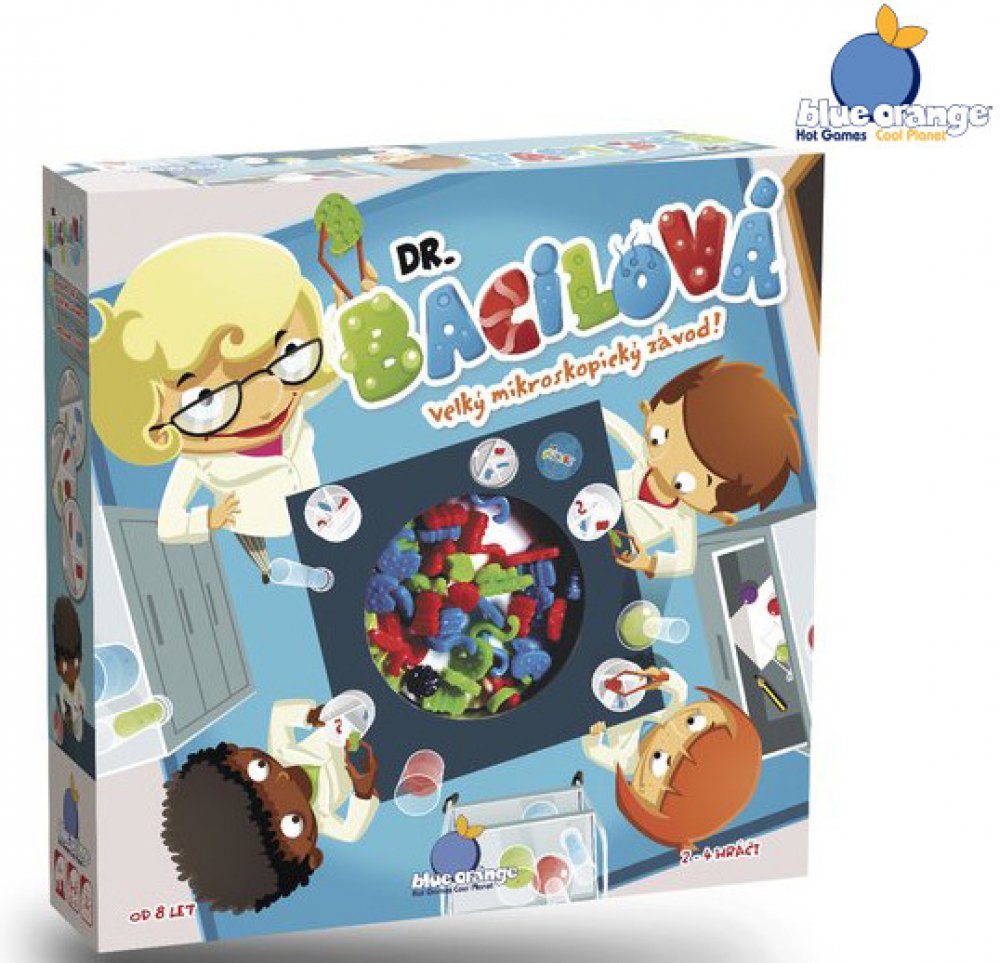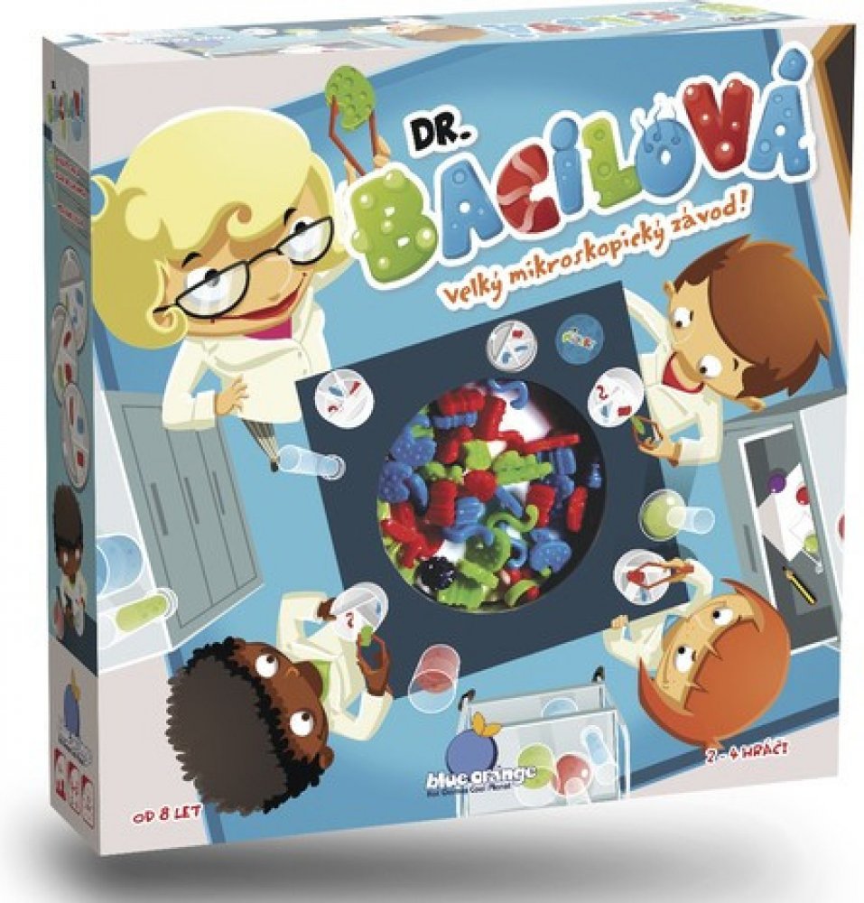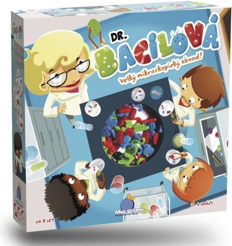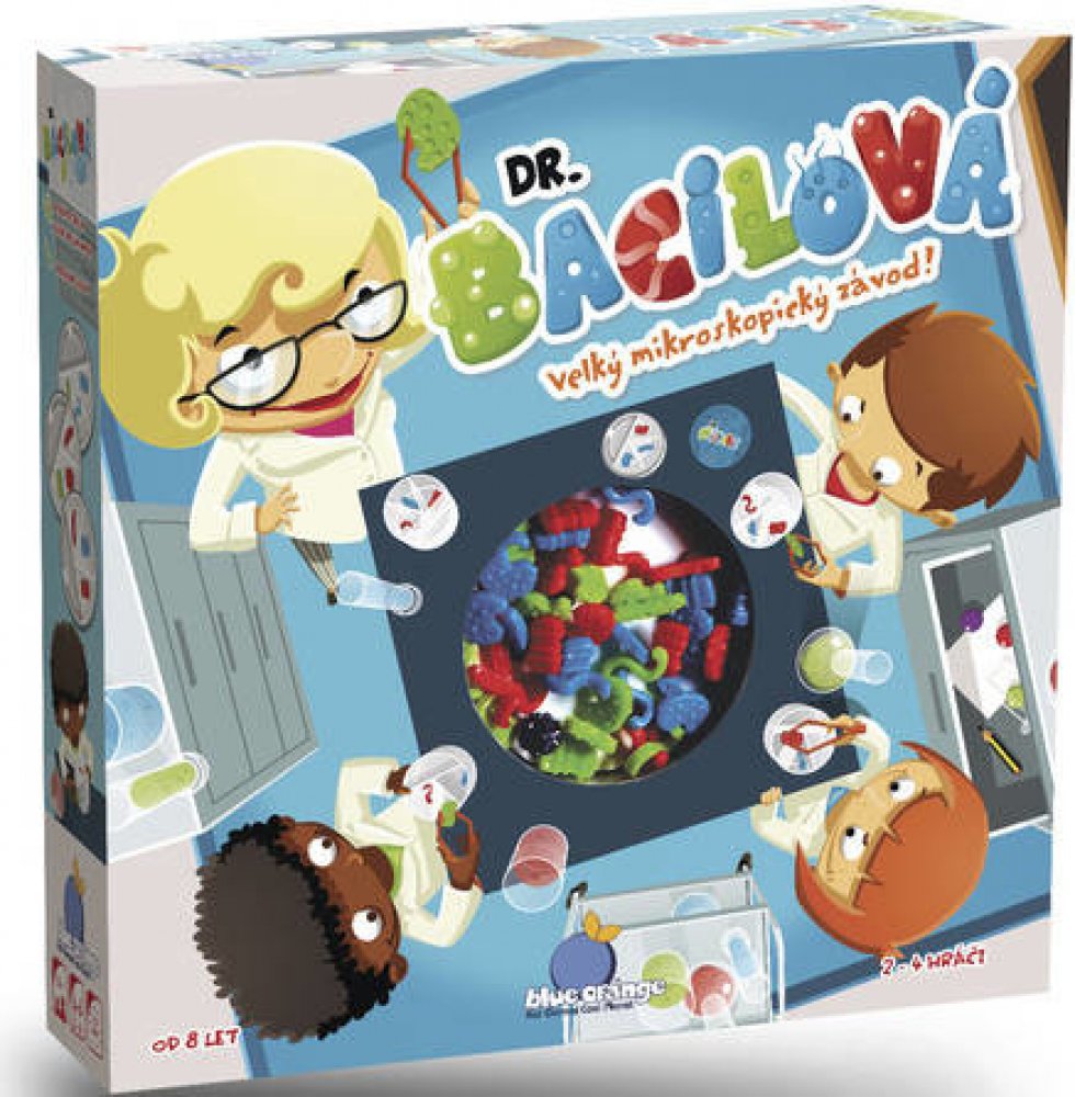 Obsah balení: pravidla, 54 karet zadání, 4 pinzety, 5 Petriho misek, 49 bacilů. Hra je dostupná v češtině a slovenštině.