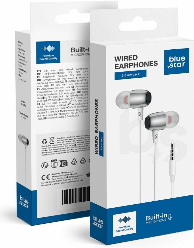Sluchátka Blue Star mají 3,5mm jack konektor a kombinují pohodlí s velmi dobrou kvalitou zvuku. Toto univerzální příslušenství se skvěle hodí do kanceláře, na doma i na cesty. Vestavěný mikrofon a dálkové ovládání poskytují další funkce. Mimořádně pohodlnéJsou dobře padnoucí a pohodlné i při dlouhodobém nošení. Kabel dlouhý 120 cm poskytuje volnost při používání v kanceláři, na cestách nebo doma. Velmi dobrá kvalita zvukuSluchátka poskytují čistý a jasný zvuk, který je ideální pro poslech hudby, telefonování nebo přehrávání podcastů. Díky vyváženému zvuku a hloubkám zní každá nahrávka přirozeně a příjemně. Vestavěný mikrofonVestavěný mikrofon vám umožní pohodlně telefonovat a dálkové ovládání vám umožní snadno přepínat skladby, upravovat hlasitost a zastavovat přehrávání - to vše bez nutnosti sahat po telefonu. Specifikace: Impedance: 32 Ω Citlivost:108±3 dB Frekvence:20 - 20 000 Hz Typ konektoru: 3.5 mm jack Délka kabelu:120 cm Hmotnost:13.1 gEAN: 5903396350399