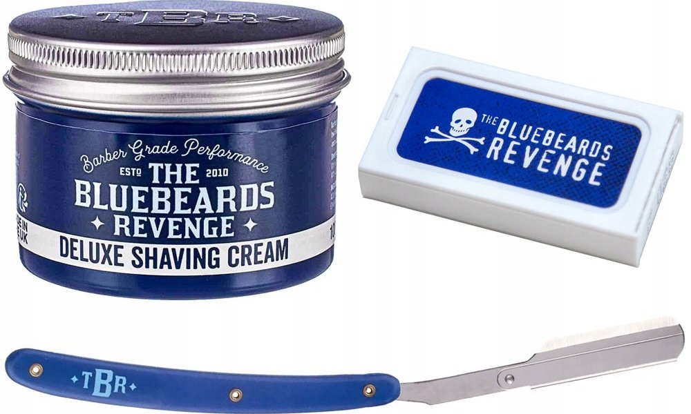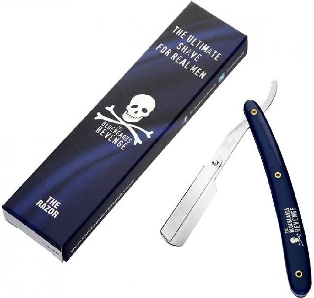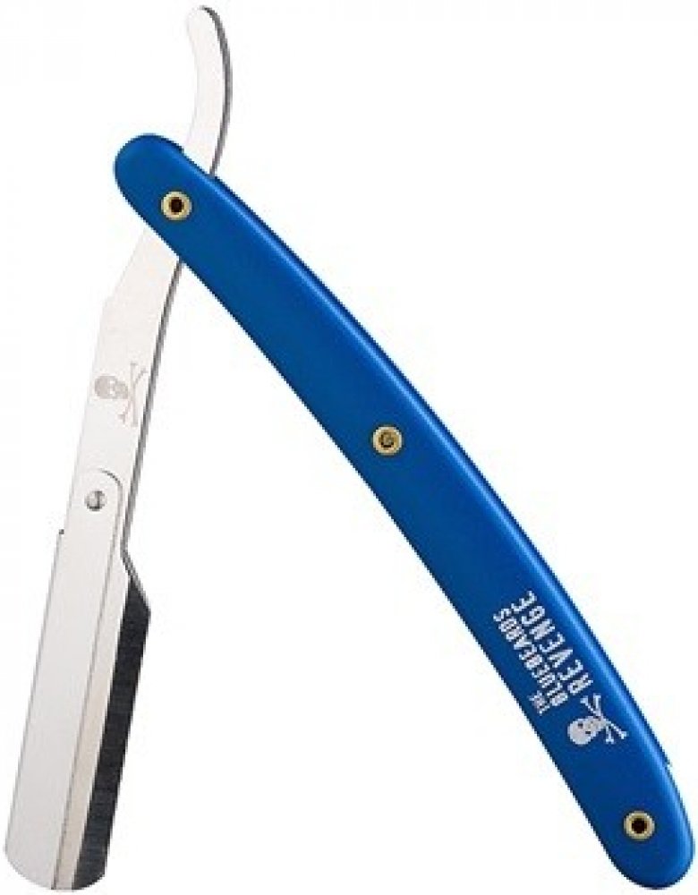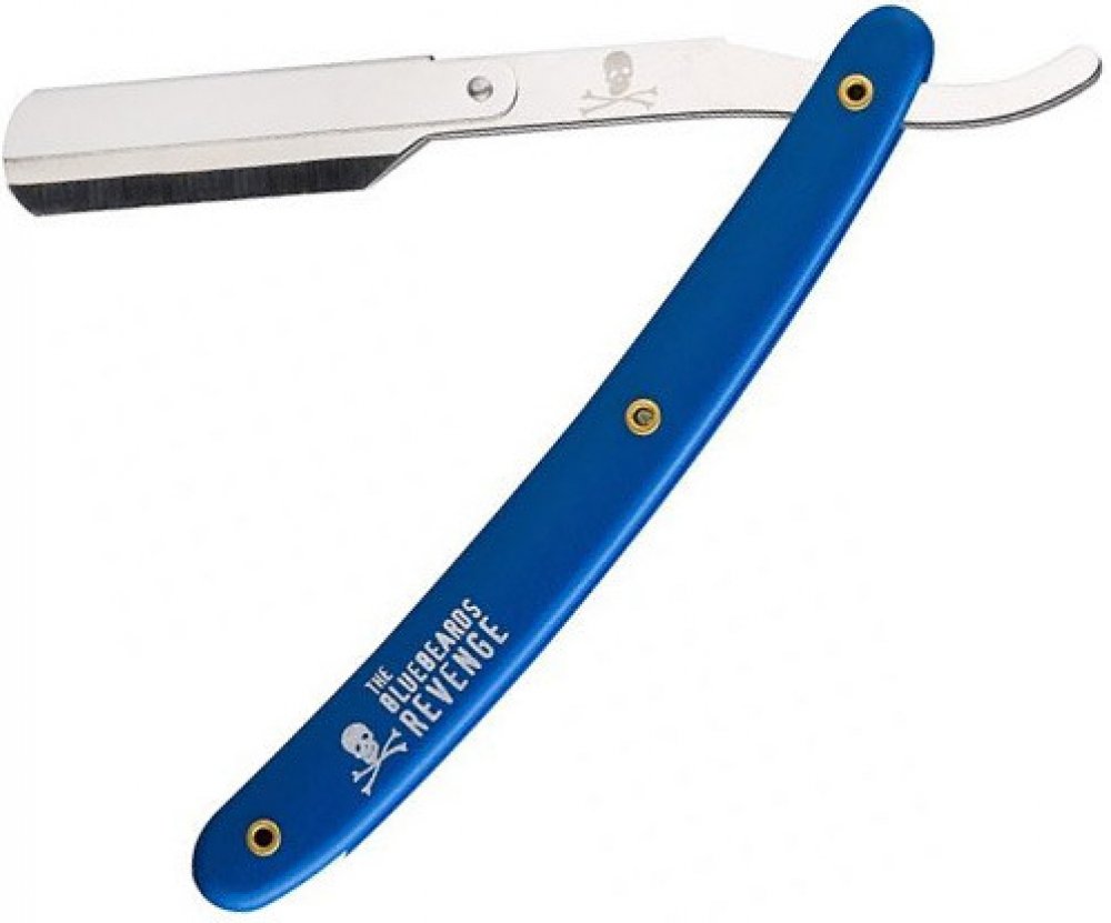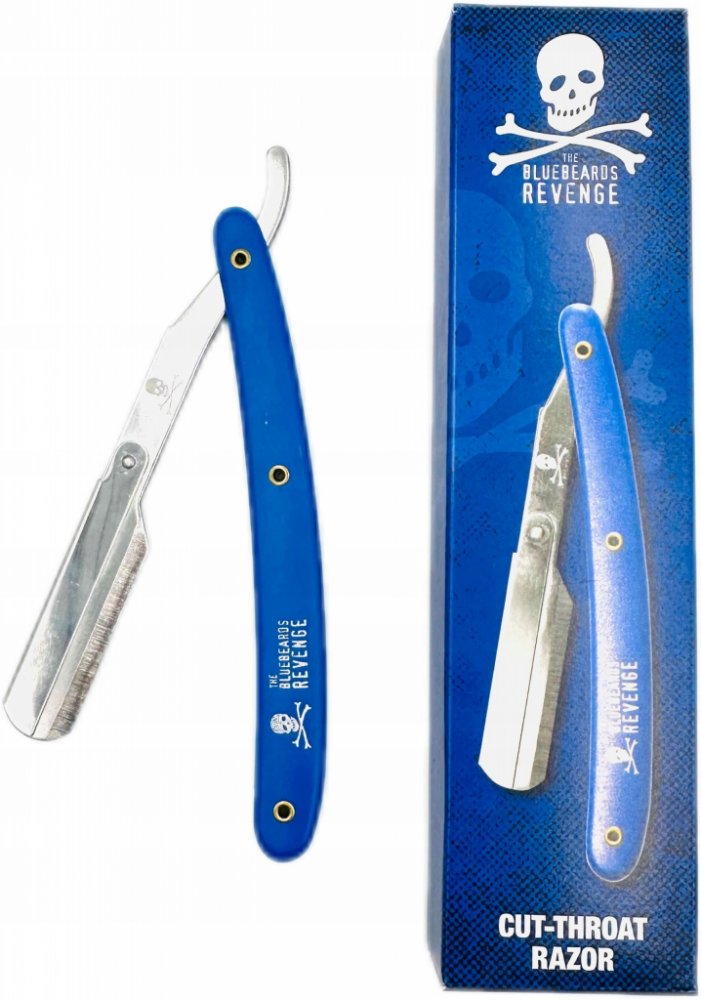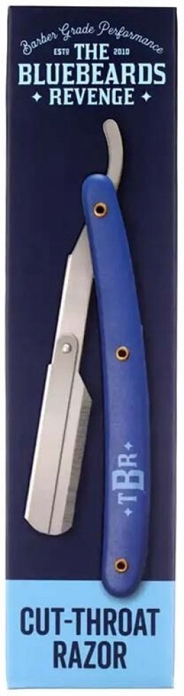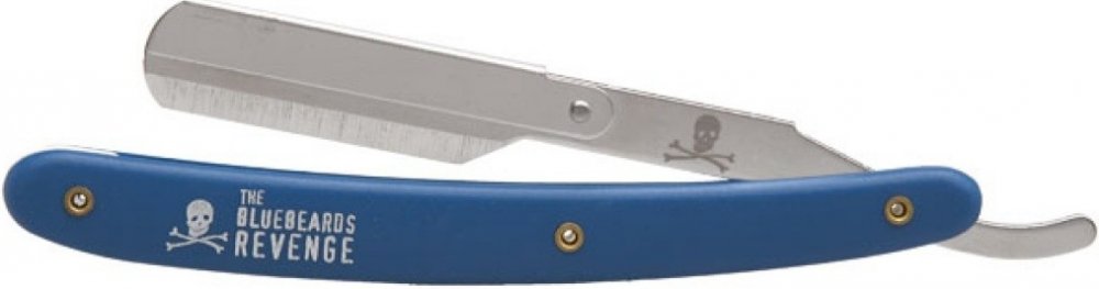 Holicí strojek typu shavetta od Bluebeards Revenge. Je podobný břitvě, ale s tím rozdílem, že je na klasické výměnné čepelky a tak se nemusíte starat o obtahování nebo broušení. Shavetta je vhodná jak do holičství, tak i pro ty, kteří si netroufají na břitvu, nebo se o ní nechtějí starat. Modrá polymerová rukojeť je zdobená logem značky a velmi příjemně padne do ruky.