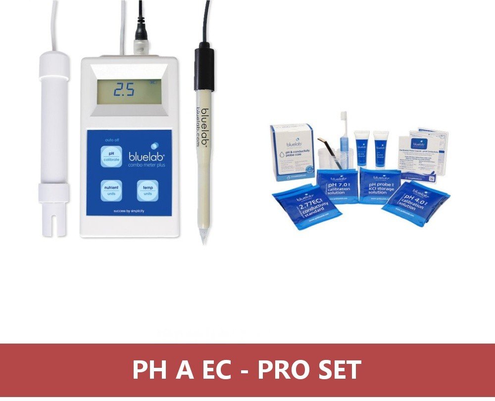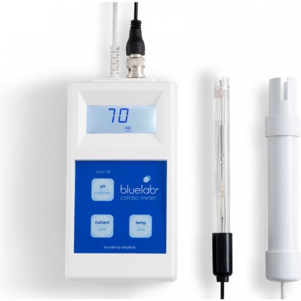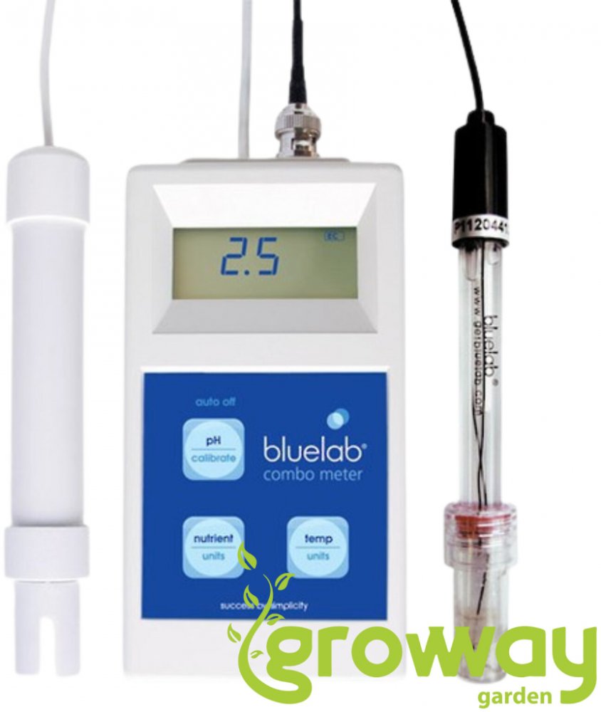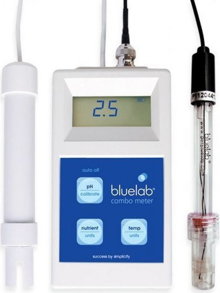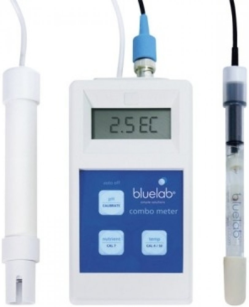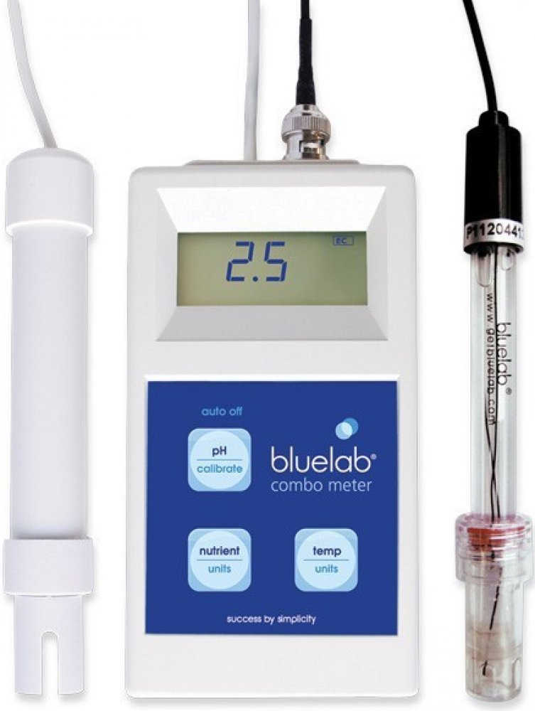 Bluelab pH a EC Combo metr – kombinovaný měřící přístroj pro měření pH, EC a teploty Bluelab Combo metr je další z řady multifunkčních měřících přístrojů, který měří hodnoty pH, EC a teplotu. Jeho součástí jsou dvě sondy. Jednou změříte pH a druhou EC a teplotu. Další výhodou Bluelab Combo metru je velikost a přenosnost. Kalibrace u pH je manuální dvoubodová a EC není třeba kalibrovat, protože kalibrace je automaticky nastavena výrobcem. Teplotu lze měřit v obou používáných veličinách (°C a °F).