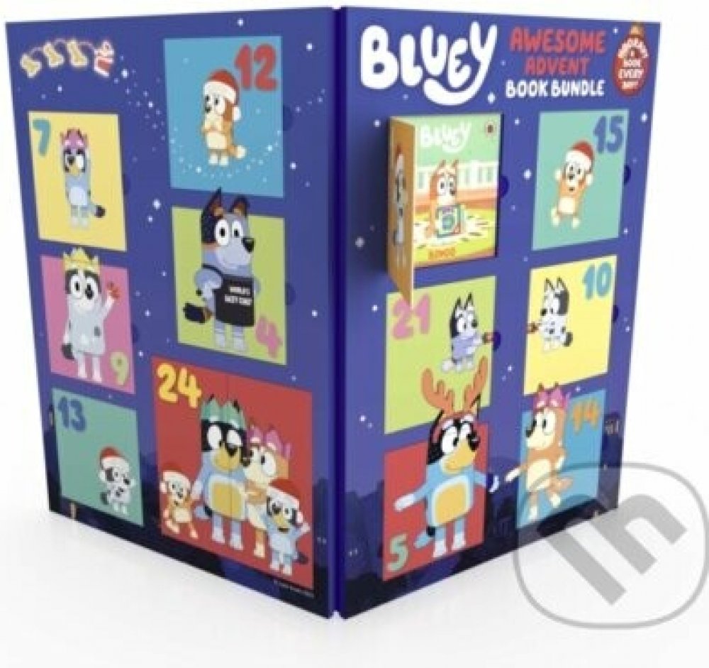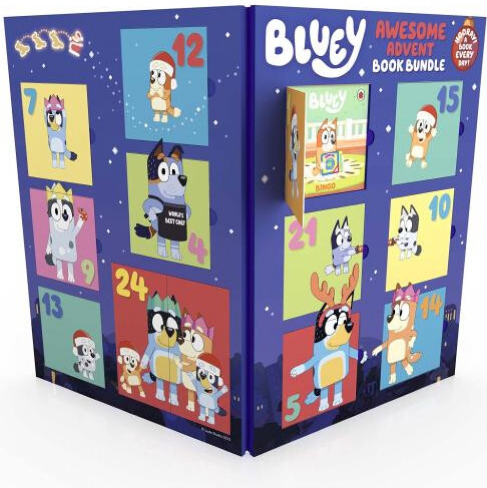 Join Bluey and her family and friends in the lead up to Christmas with 24 fun mini-books, including a special Christmas story for Christmas Eve!This exciting advent calendar includes 12 stories and 12 colouring books, so every day is an adventure with Bluey.Stories include: The Beach, Grannies, Butterflies, Bingo and many more.Return your books to each window so you can reuse your Advent Calendar every year!FOR REAL LIFE?!What Bluey will you read this Christmas? Also available:Bluey: Christmas Eve with Verandah SantaBluey: 12 Days of Christmas Tabbed Board BookBluey: Christmas SwimBluey is an Emmy award-winning Australian children's television programme following the adventures of a loveable six-year-old Blue Heeler Puppy, Bluey and her family. It’s currently showing on Disney+, BBC iPlayer and CBeebies in the UK. Bluey enjoys exploring the world and using her imagination to turn everyday life into an amazing adventure. Join Bluey in this fun collection of story, activity and novelty books that celebrate play.