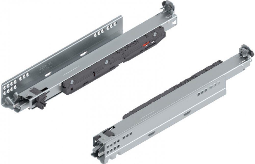 Integrovaná technologie Blumotion zajišťuje měkké a bezhlučné dovírání zásuvek, a to i při větší zátěži nebo rychlém zavření. Nosností 40 kg.