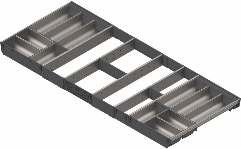 Tento vysoce hodnotný systém vnitřního členění vnese do každé zásuvky či výsuvu skvělý pořádek. Ať už se jedná o příbory, láhve nebo hrnce – uložení veškerých předmětů je tu bezpečné a pohodlné. Uspořádejte si svůj úložný prostor přehledně a podle potřeby. Systém vnitřního členění umožňuje díky miskám a posuvným příčkám obrovskou volnost v uspořádání a organizaci vnitřku zásuvek. Hlavní využití je pro kuchyňské zásuvky, ale lze jej využít také např. v kancelářích či šatnách pro uspořádání drobnějších věcí.