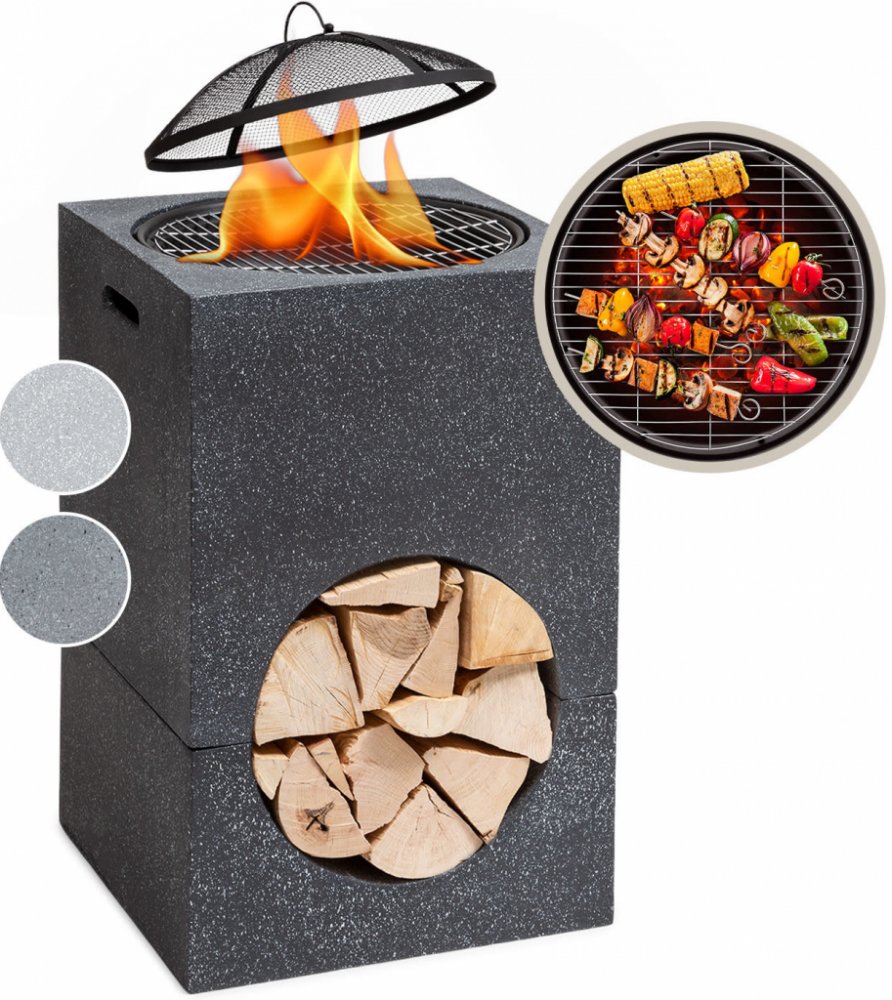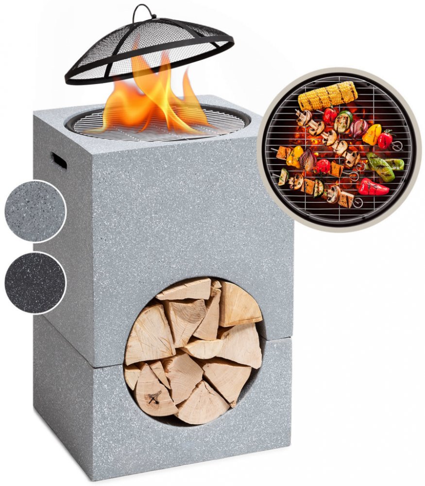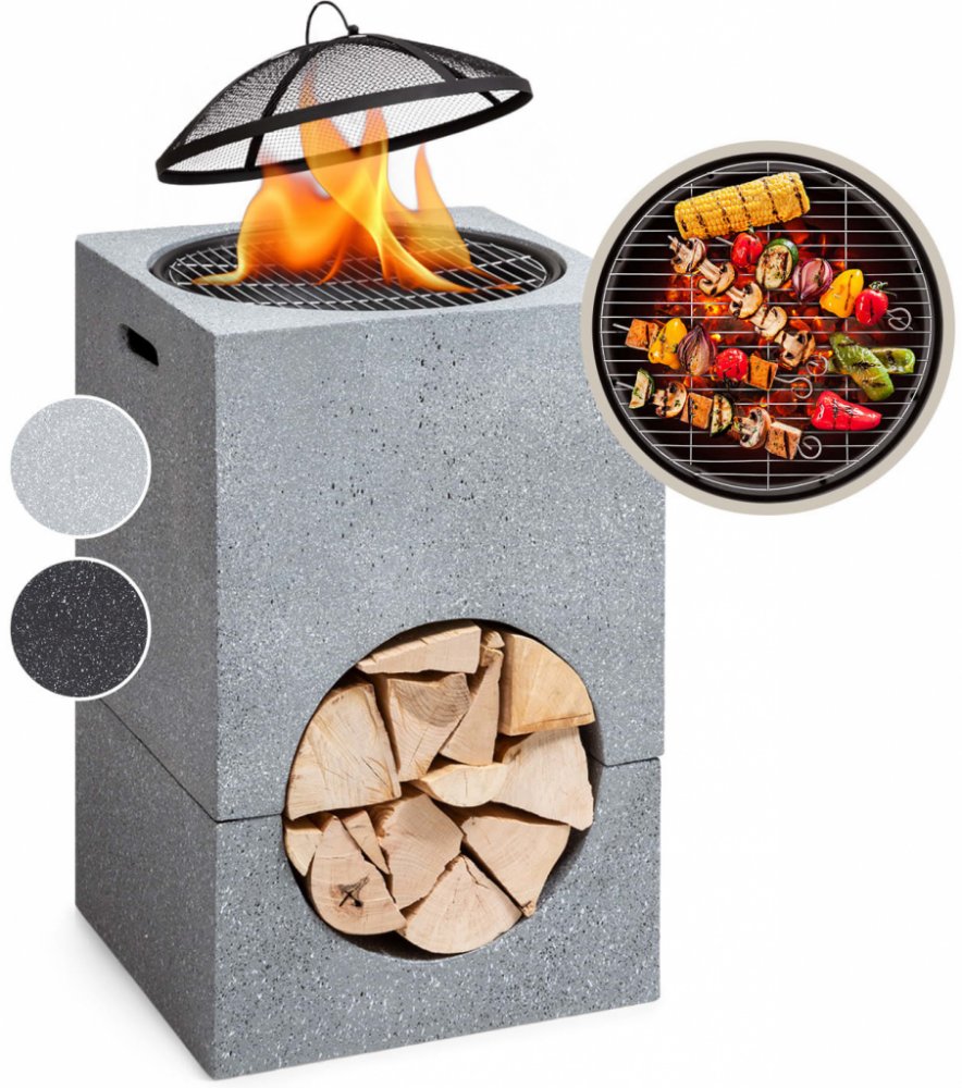 Oheň pod hvězdnou oblohou a pohodlné grilování: užijte si nezapomenutelnou atmosféru otevřeného ohně a šťavnatě připravených pochoutek ve společnosti rodiny a přátel s ohništěm a grilem v jednom Monolith od blumfeldt.Poutavé ohniště je vyrobeno z robustního a lehkého materiálu MGO (Magnesium Fiberclay) a kvalitního ocelového pláště. Je vybaven praktickou přihrádkou na dřevo, která přesvědčí velkým úložným prostorem a diskrétně umocní atmosféru každé zahrady. Když na něj položíte chromovaný ocelový rošt, akce se přesune z plamenných záblesků na prskající chutě grilovaných klobás, steaků, zeleninových špízů nebo dokonce grilovaného sýra. Součástí dodávky je také praktická ochrana proti jiskrám, která chrání všechny okolostojící osoby a okolí před nekontrolovaným jiskřením. Díky dvěma bočním držadlům lze ohniště s grilem Monolith od blumfeldt kdykoli přenášet a přemisťovat.