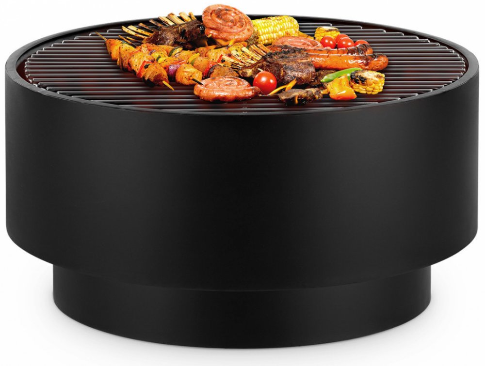 Ohniště a gril 2v1 Blumfeldt Pompeji - černá Ohniště s grilem Blumfeldt Pompeji je kombinace grilu, ohniště a stolku. Užívejte si večer v zahradě nebo na terase: s ohništěm a grilem Blumfeldt Pompeji vám udělá třikrát takovou radost. V ohništi s průměrem 60cm šíří dřevěné klády, uhlí nebo brikety s plápolajícími plameny příjemné teplo a atmosféru táborového ohně. Pevný obal je vyroben z 2,5 mm si...