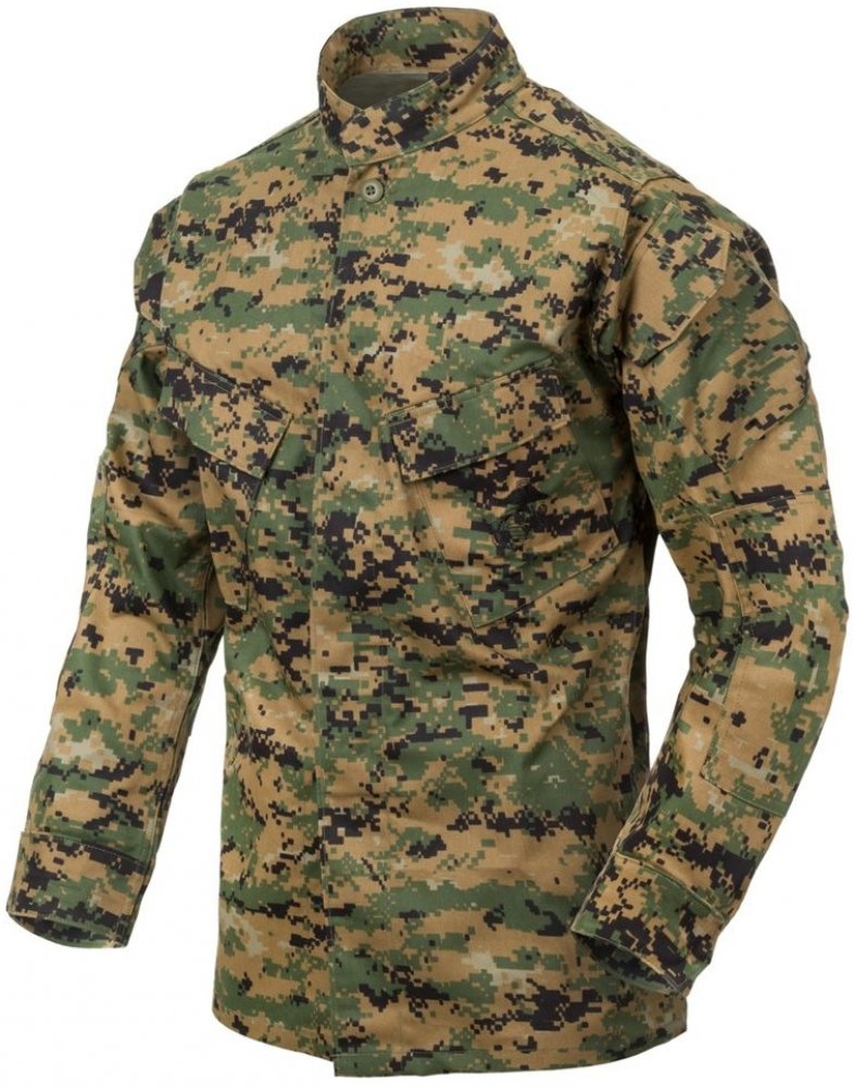 Blůza v moderním střihu MCCUU který nosí od roku 2002 příslušníci americké Námořní pěchoty (USMC). Dokonalé provedení včetně detailů. Na kapse vyšitý znak EGA námořní pěchoty. Pěkné barevné provedení maskovacího vzoru. Dvě šikmé kapsy na prsou.