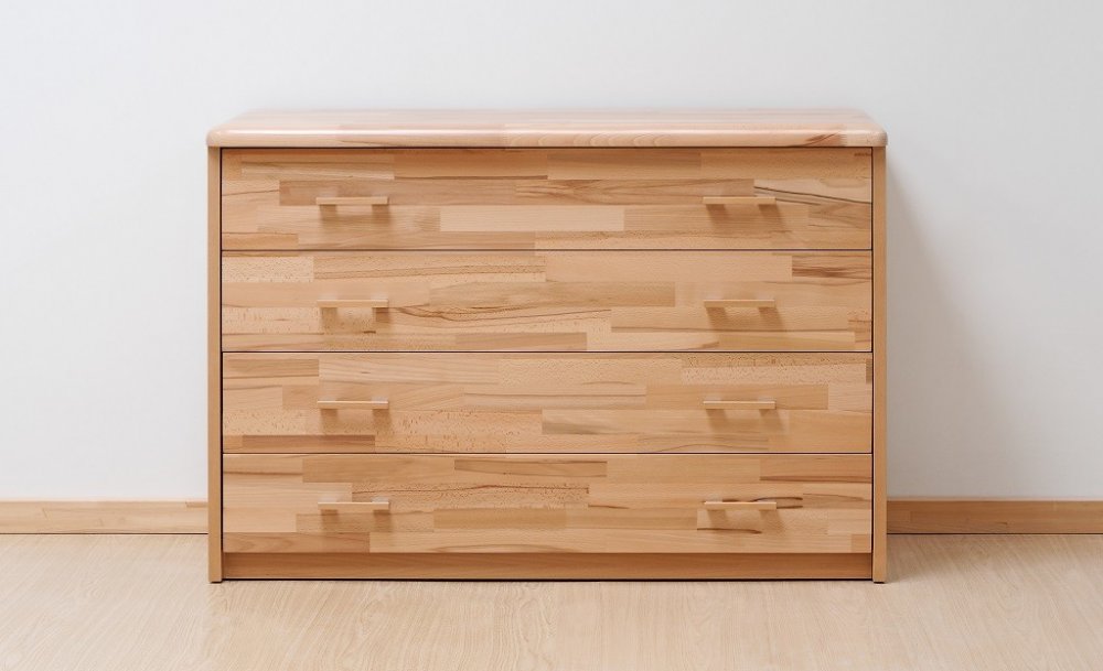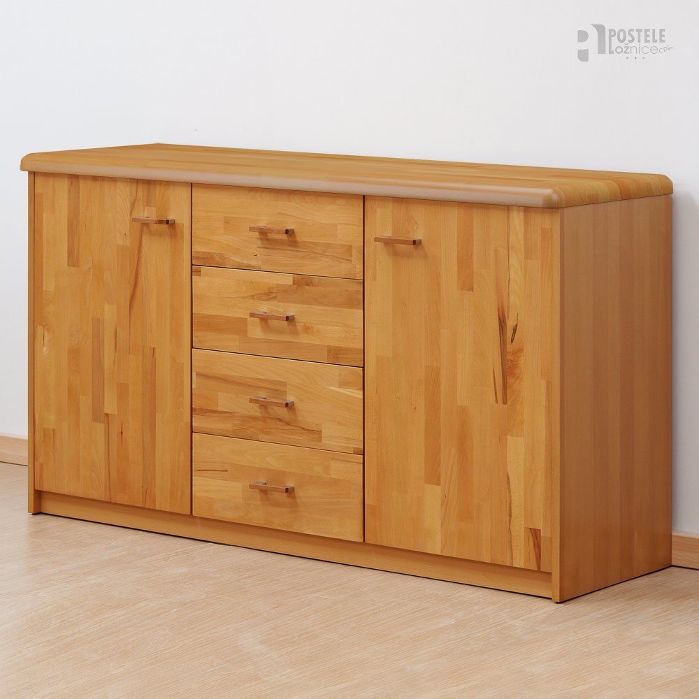 Komoda je vyrobena z vysoce kvalitního bukového masivu a přírodní dýhy.