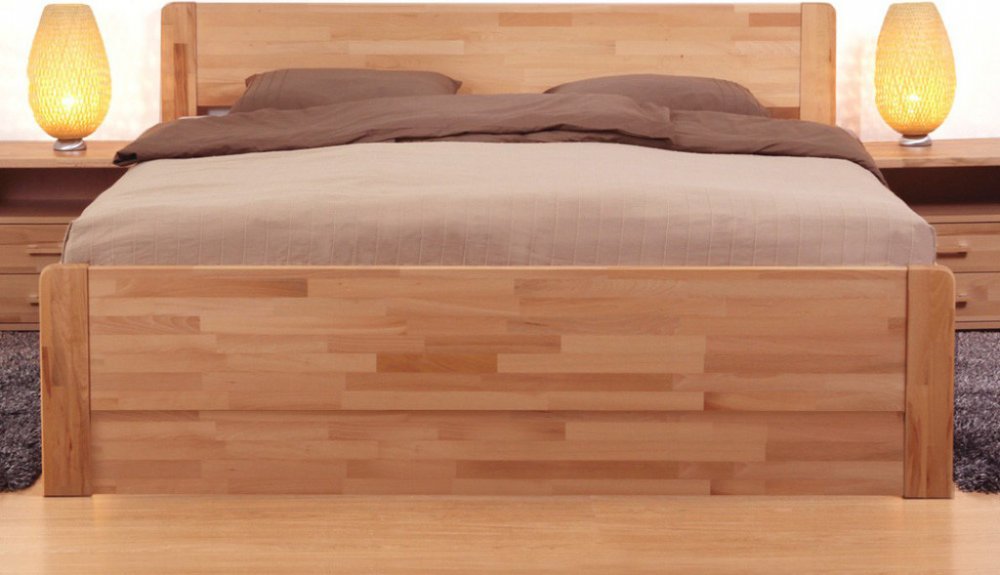 Postele z masivu mají konstrukční díly (nohy) tloušťky vždy minimálně 40 mm, postranice 30 mm a výplň zadního čela 30 mm. Každá postel vyrobená z masivu je jedinečná. Kresba dřeva je u každého kusu dřeva jiná a originální, proto nelze vyrobit dva totožné výrobky. Postel může být vyrobena z jádrového buku, průběžného buku, dubu cink nebo dubu průběžného. Provedení postele může být s rovnými rohy, které je levnější na výrobu nebo s oblými rohy, které se ručně frézují a dokonaleji navozují atmosféru masivního dřeva.