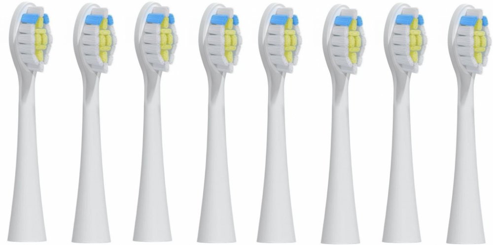 Náhradní hlavice BMK Trading jsou kompatibilní s elektrickými zubními kartáčky Philips Sonicare. Jsou ekvivalentem k zubním hlavicím Philips Sonicare W Optimal White HX6068/12. Velmi účinně odstraňují pigment z povrchu zubů a současně také odstraní povrchové skvrny vznikající konzumací jídla a nápojů, díky čemuž zuby bělí. Štětiny jsou vyrobené z vysoce kvalitního materiálu nylon DuPont 612, zatímco spodní kroužek, který převádí vibrace na hlavici, je kovový. Hlavice jsou opatřené modrými vlákny, která postupem času ztrácí svoji barvu a upozorní vás na nutnost výměny. Doporučeno je měnit hlavici přibližně každé tři měsíce. Balení obsahuje 8 hlavic, které lze velmi snadno nasadit i sejmout z těla kartáčku. Každá z nich disponuje také nasazovacím průhledným ochranným krytem. Náhradní hlavice BMK Trading zajistí precizní čištění dutiny ústní. Klíčové vlastnosti náhradních hlavic BMK k zubním kartáčkům Philips Sonicare, 8 ks - kompatibilní s Philips Sonicare W Optimal White...