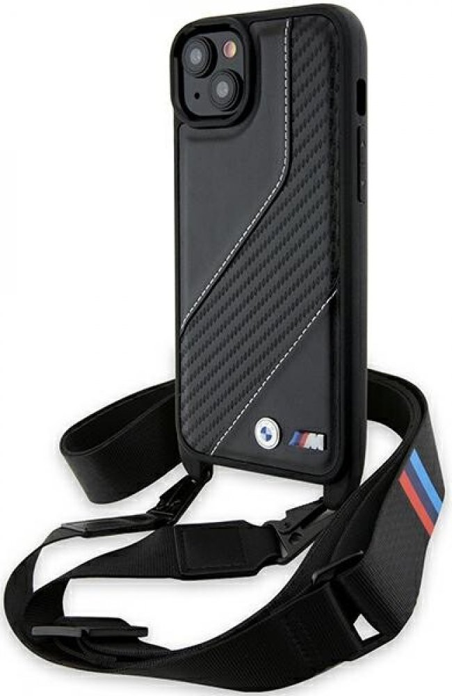 BMW - Kožený řemínek M Edition Carbon Stripe & Strap - iPhone 15 Plus BMHCP15M23PSCCK - černý