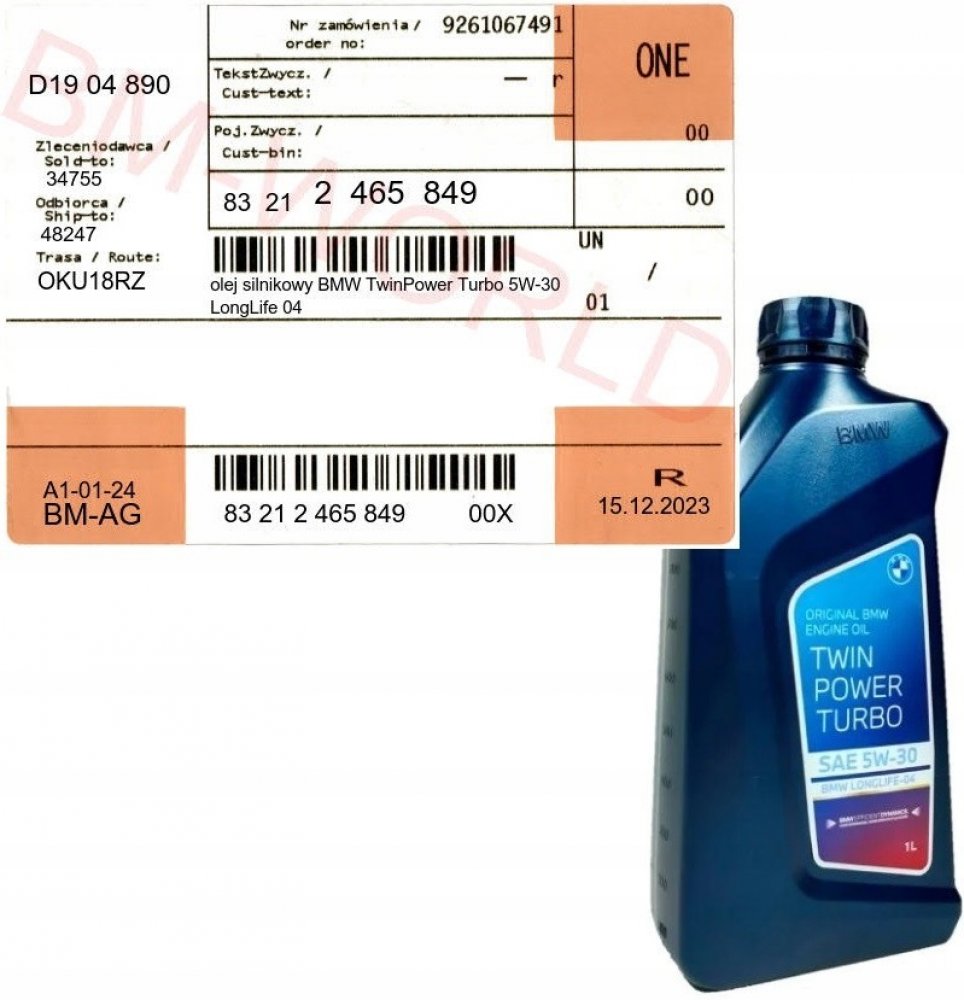 BMW Longlife-01 TwinPower Turbo SAE 5W-30 je motorový olej pro trvale udržitelnou radost z jízdy. Motorový olej byl vyvinut pro vozidla s technologií motoru TwinPower Turbo. Používá se však také ve vozidlech bez turbodmychadel, která vyžadují motorový olej s homologací BMW Longlife-01 . Kromě vysokého ochranného koeficientu zlepšuje motorový olej BMW Longlife-01 Twin Power Turbo 5W-30 výkon motoru zlepšením viskozitních vlastností a snížením tření. Jedná se o OEM produkt výrobce BMW. Číslo dílu BMW je: 83212465843 . BMW Longlife-01 TwinPower Turbo SAE 5W-30 je vyvinut exkluzivně pro BMW a testován BMW. produkt BMW Schválení BMW Longlife-01 splňuje ACEA A3/B4, API SL
