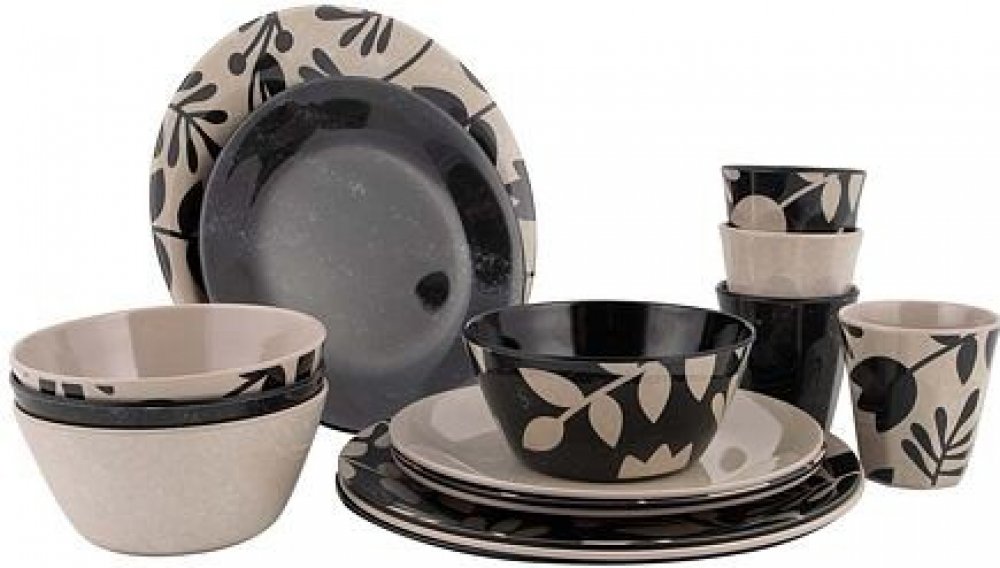 Luxusní jídelní setSadu Bo-Camp Mix & Match tvoří šestnáct kusů nádobí z melaminu v atraktivním designu v barvách černá a béžová a se vzorem v kontrastní barvě.Melaminové nádobí je prakticky nerozbitné a velmi lehké, je také odolné proti poškrábání a můžete jej mýt v myčce. Tato stylová sada je vhodná pro 4 osoby a skládá se z menších talířů, jídelních talířů, misek a šálků, které společně tvoří v...