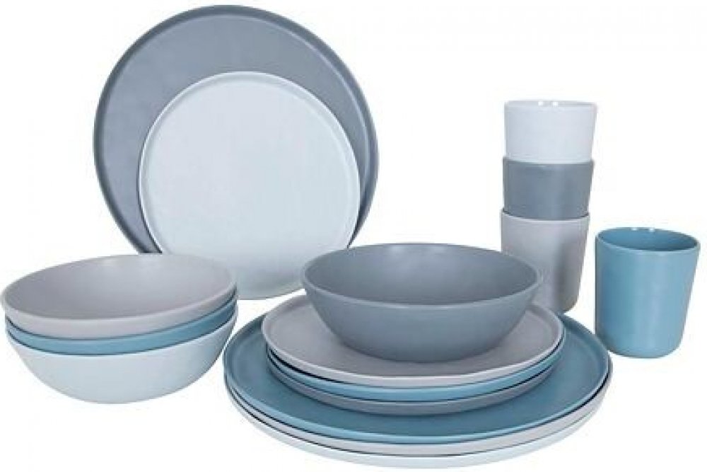 Stylový a nerozbitný jídelní setSada Bo-Camp Molvadite se skládá ze šestnácti kusů nádobí z melaminu v atraktivním "kamenném" designu a ve čtyřech barvách.Melaminové nádobí je prakticky nerozbitné a velmi lehké, navíc je odolné proti poškrábání a můžete jej mýt v myčce. Tato stylová sada je vhodná pro 4 osoby a skládá se z menších talířů, jídelních talířů, misek a šálků v různých barvách.Klíčové vlastnosti sady nádobí Bo-Camp Molvadite:Luxusní a trendy sada nádobí s kamenným vzhledem.Téměř nerozbitné a lehké nádobí, odolné proti poškrábání.Schváleno pro potraviny, je možné mýt v myčce, vhodné do teploty 85oC.Sada se skládá z:4 menších talířů Ø 21 cm,4 jídelních talířů Ø 27 cm,4 misek Ø 16,5 cm, objem 700 ml,4 šálků Ø 8 cm, objem 300 ml.Parametry sady nádobí Bo-Camp Molvadite:materiál: melaminhmotnost: 2,8 kgrozměry balení: 15 x 28 x 28,5 cmNesmí se používat k podávání teplých jídel a nápojů dětem od 0 do 3 let.