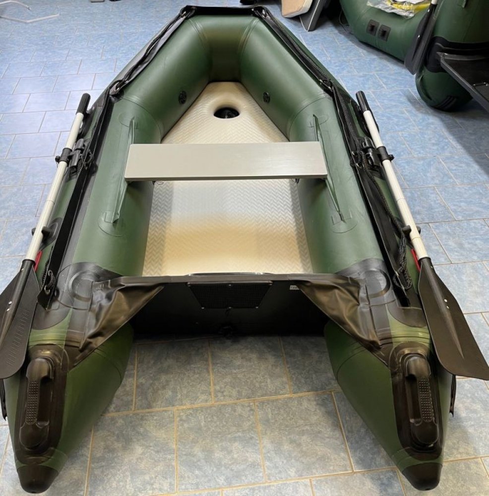 Nafukovací člun Boat007 KIB 230 - Vysokotlaká nafukovací podlaha s kýlem. NOVINKA 2022. V zelené nebo šedé barvě. Typ KIB je vhodný pro ty, kteří chtějí lehký a rychle sestavitelný člun. Vysokotlaká podlaha se nafukuje až na 700 mb (tubusy pouze na 250 mb) Pod rovnou vysokotlakou nafukovací podlahou je nafukovací kýl, který dodává jízdě dobré jízdní vlastnosti. PVC materiál je několikavrstvý o sí...