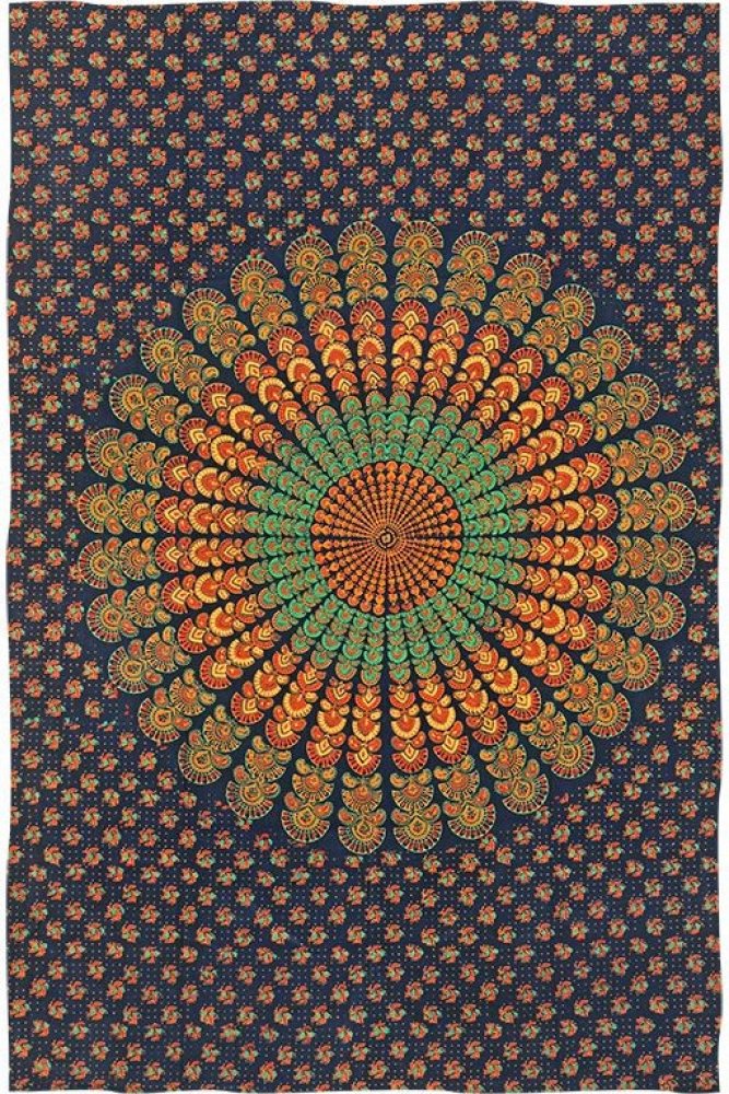 BOB Batik přehoz na postel indický Peacock modrý oranžový bavlna 220 x 145 cm