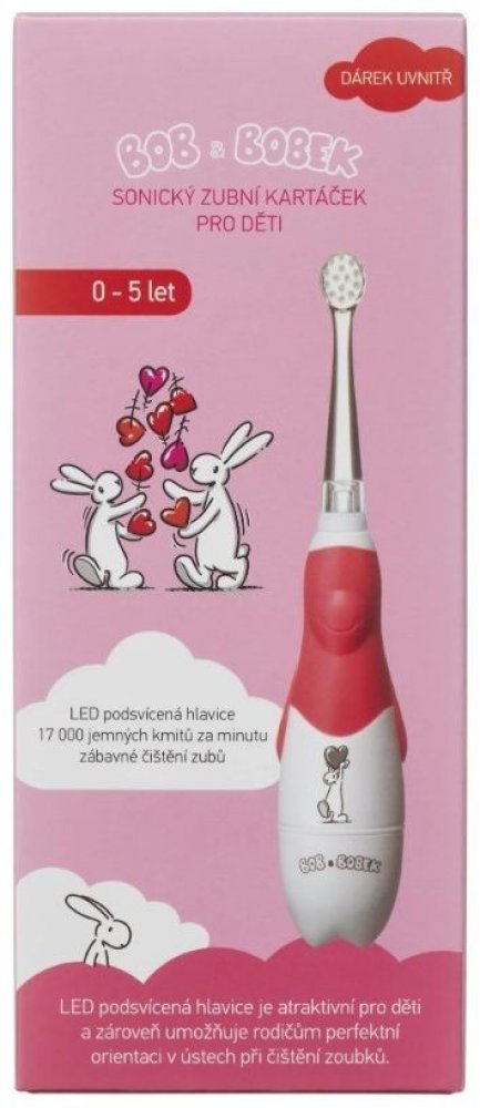Bob a Bobek baby sonický dětský kartáček se srdíčky - Light Red